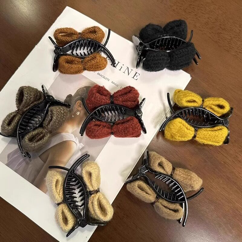 📚 针织蝴蝶结丸子头抓夹女发夹子头饰秋冬2024新款盘发固定爪夹发卡