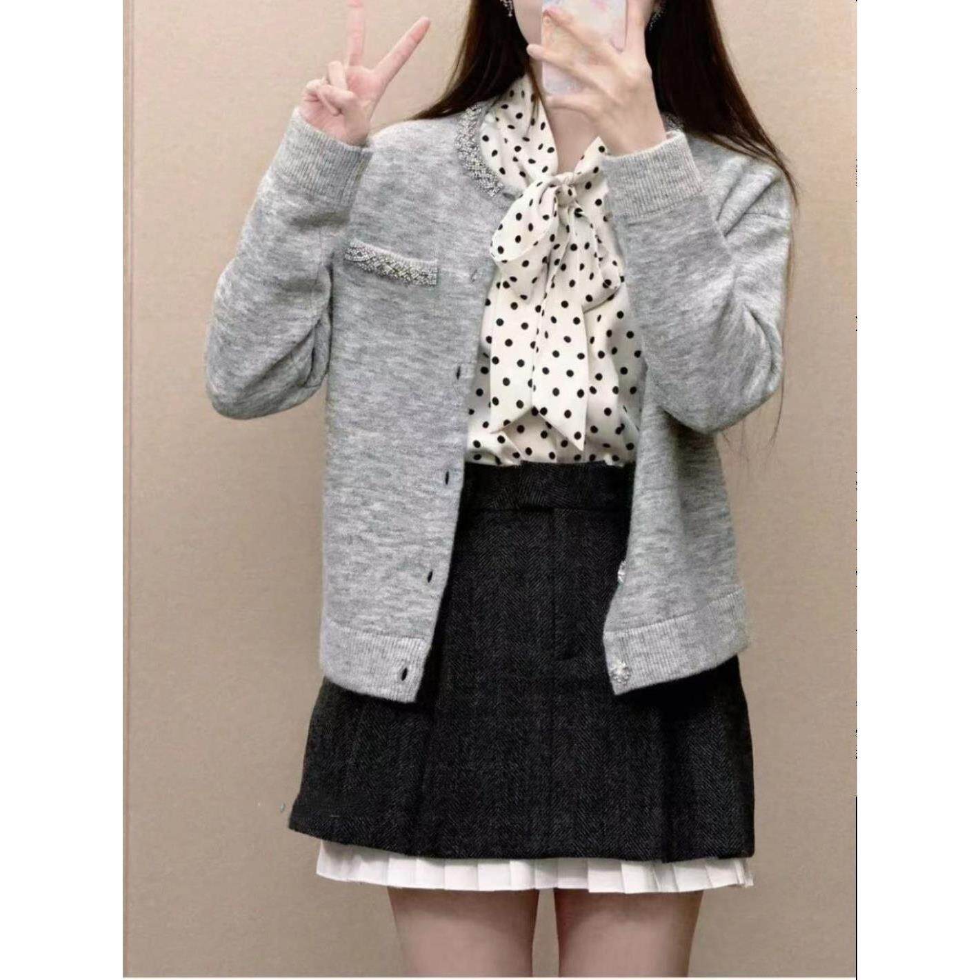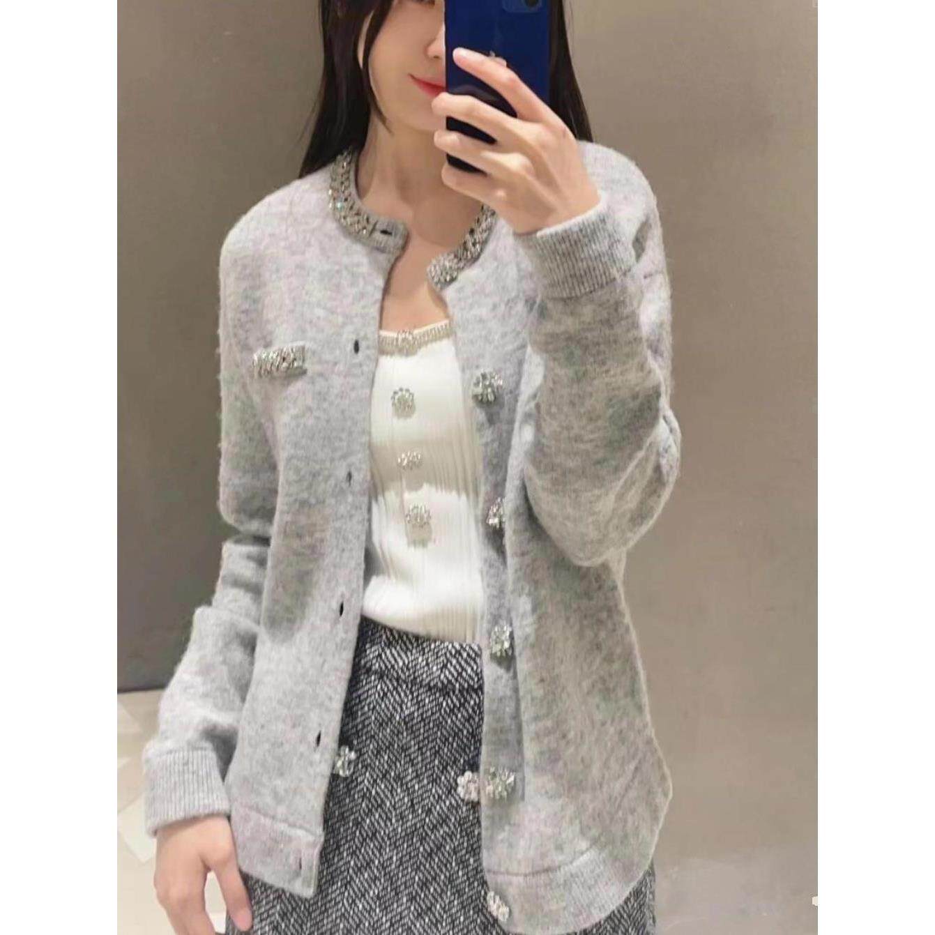 📚 【现货】About Reformation浅灰钻饰休闲长款格雷风针织开衫外套