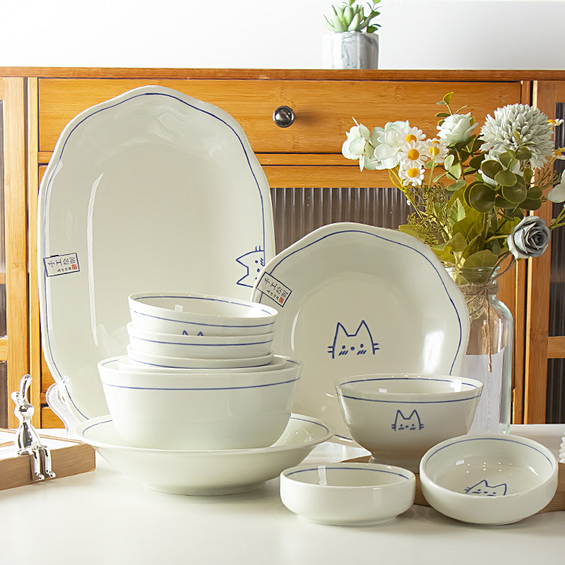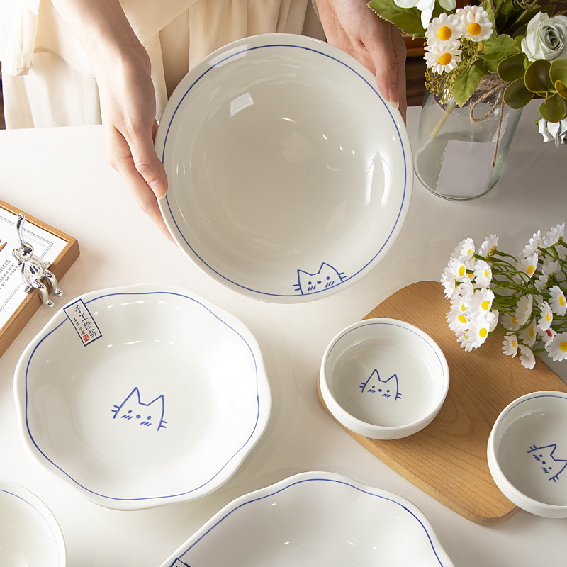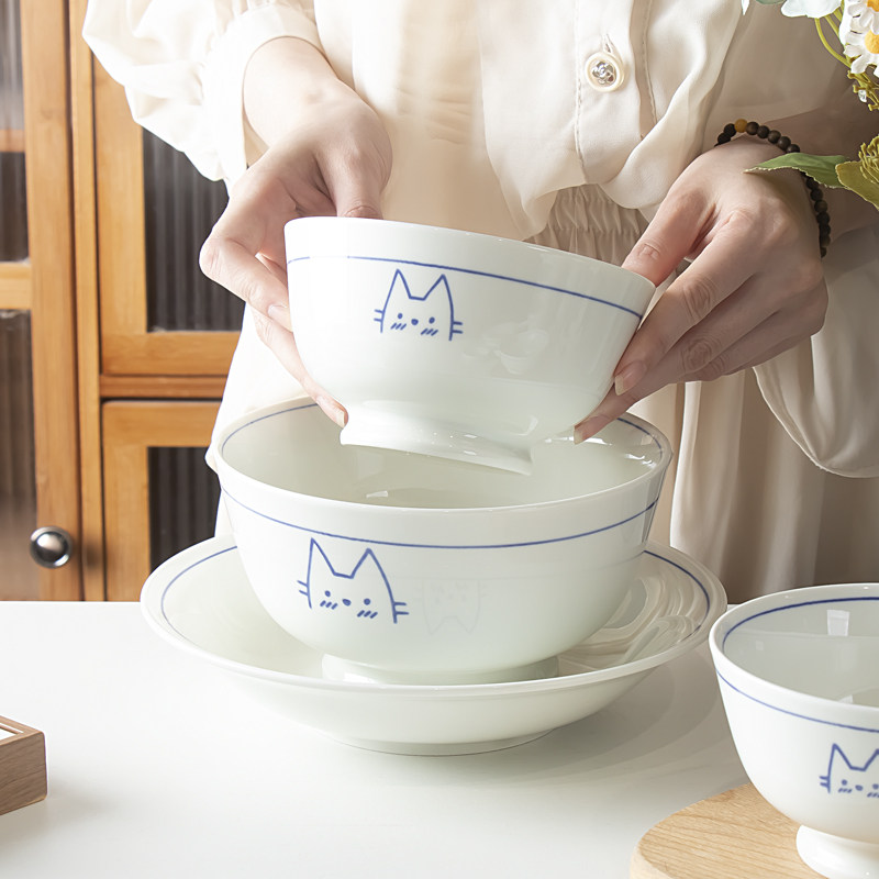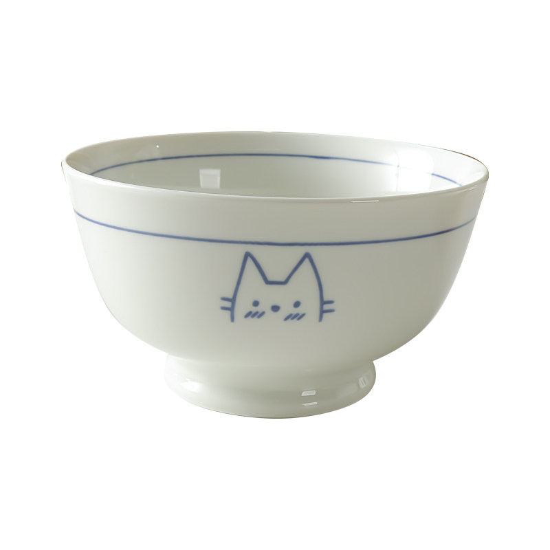 📚 日式陶瓷釉下彩猫咪米饭碗家用2025新款高颜值高脚碗面碗汤碗