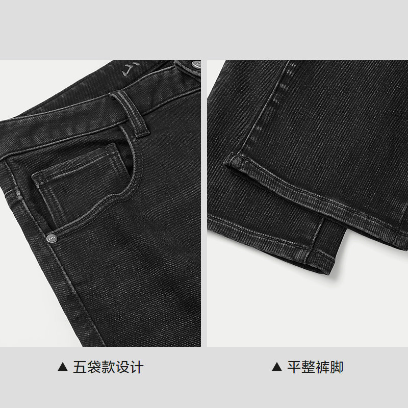 📚 HLA/海澜之家山不在高猫须黑牛仔裤25秋冬新石墨烯加厚直筒裤子男