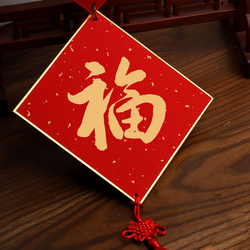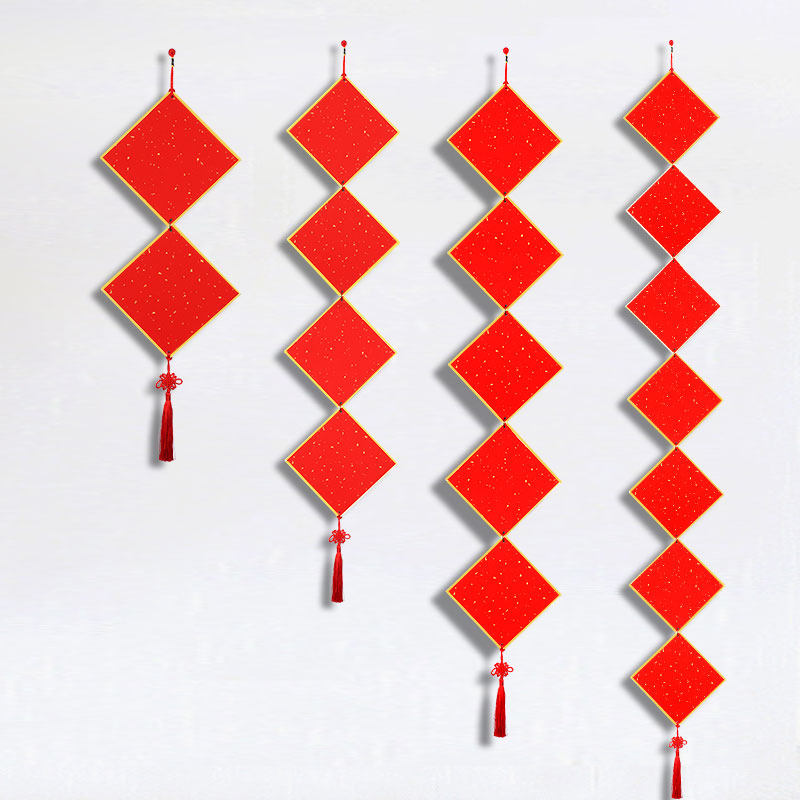 📚 万年红硬卡串串加厚卡纸双面节日喜庆挂饰中国结挂件免装裱扇面手写国画书法作品蜡染宣纸福卡