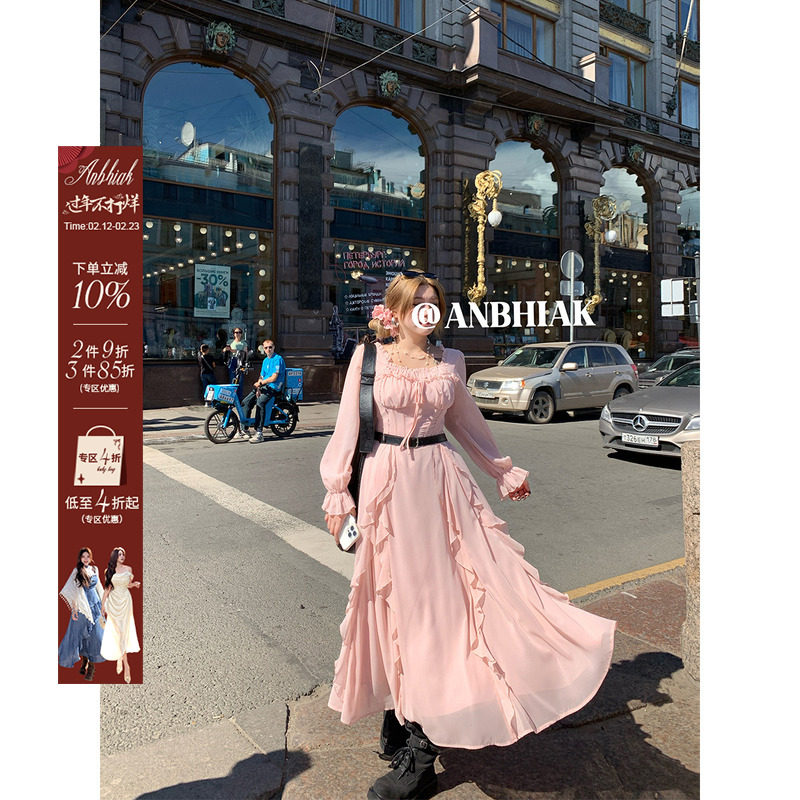 📚 安妮不火风之琴鱼骨塑形雪纺裙女2025秋冬新款微胖大码法式大摆裙
