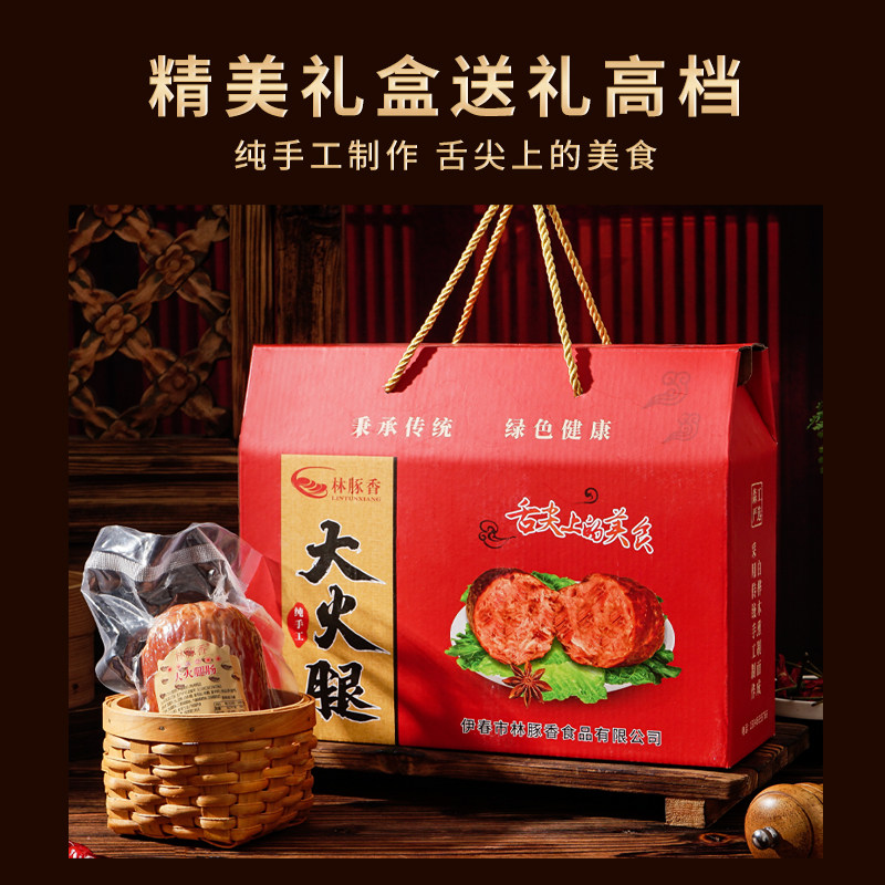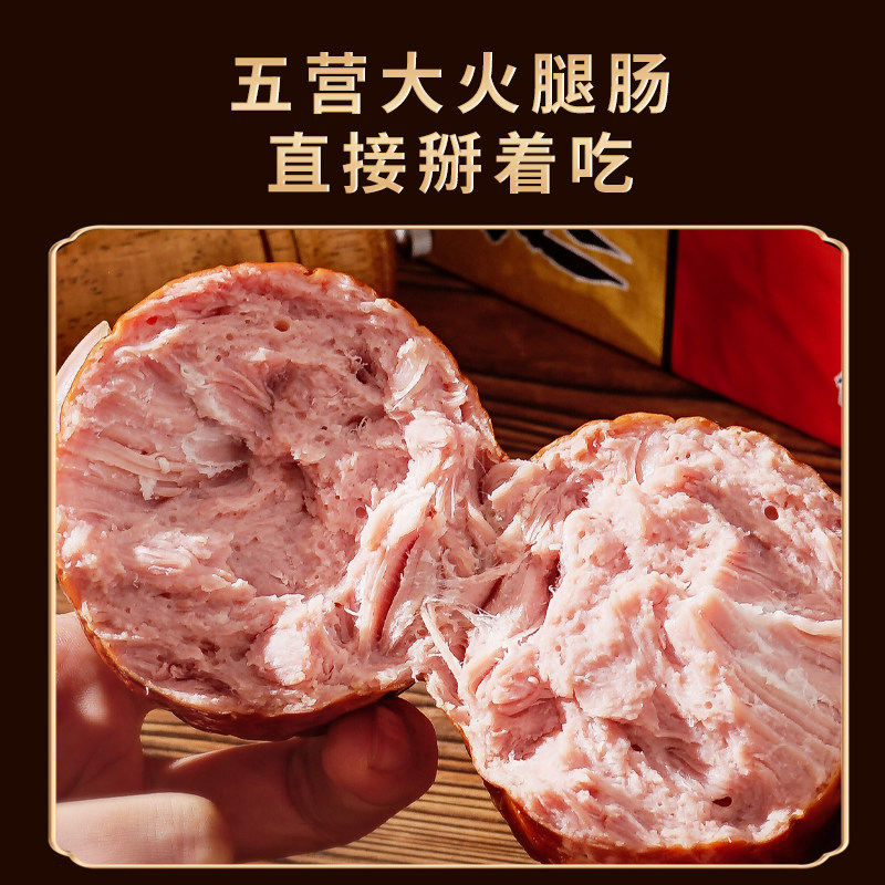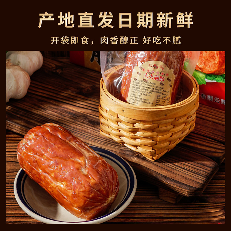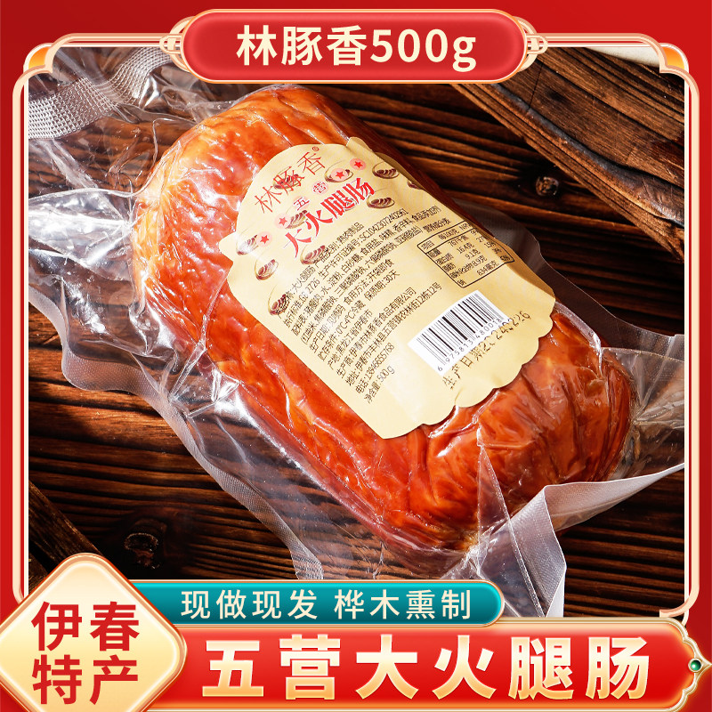 📚 伊春五营大火腿桦木熏制老式火腿肠95%猪瘦肉早餐即食香肠500g/根