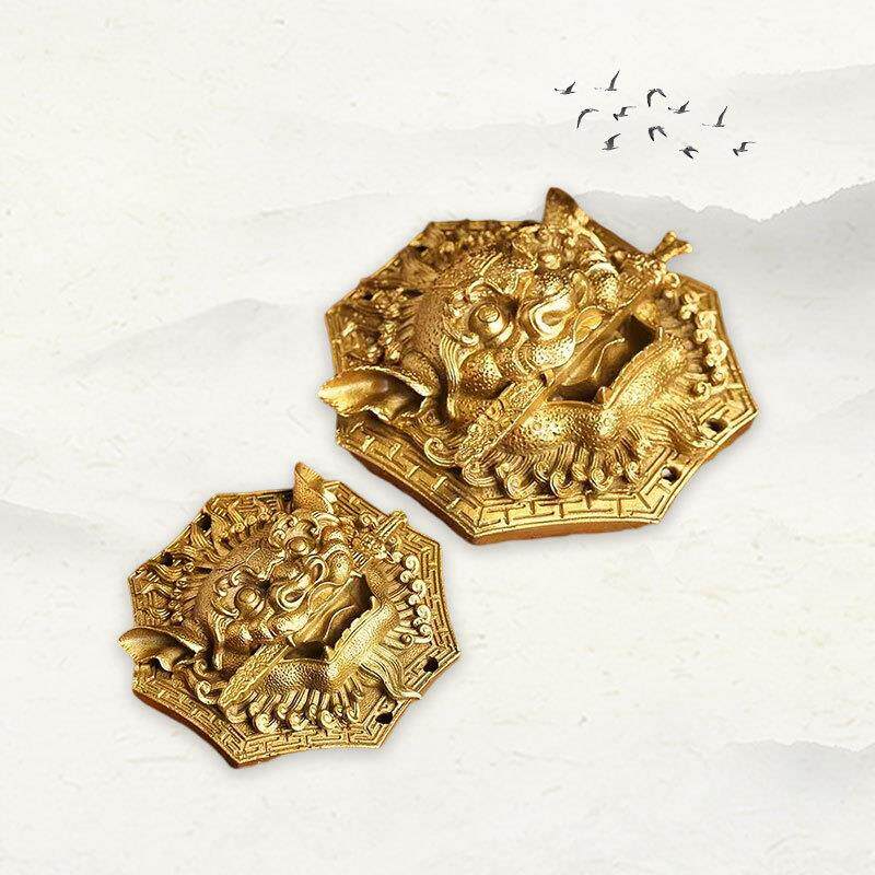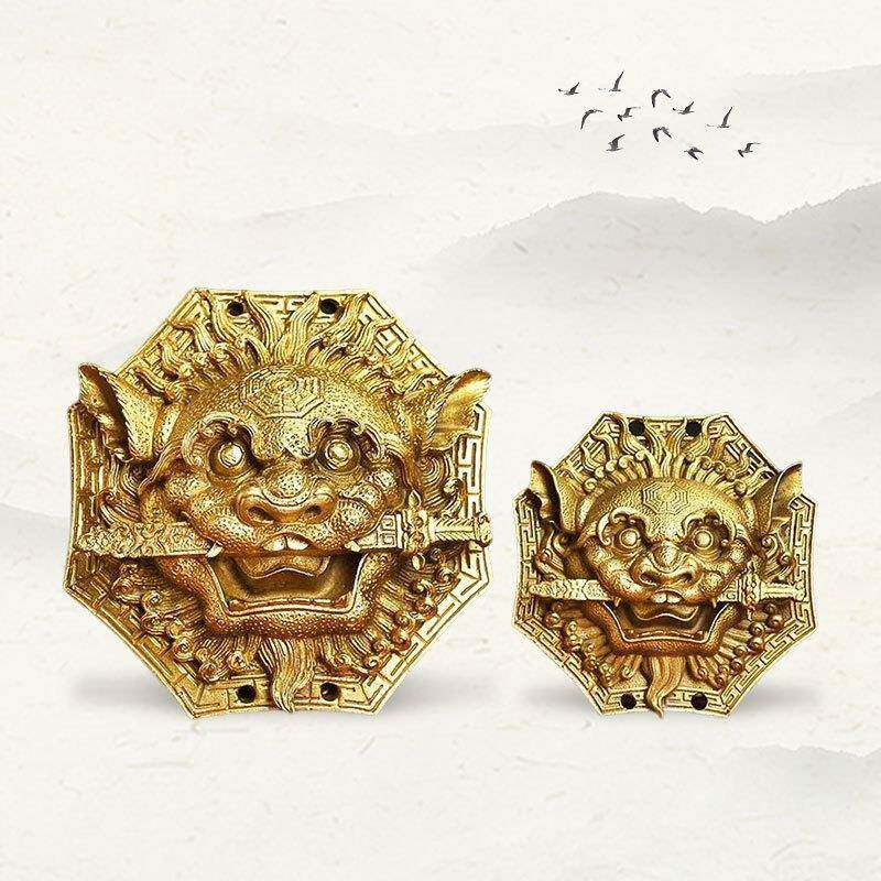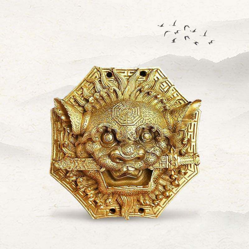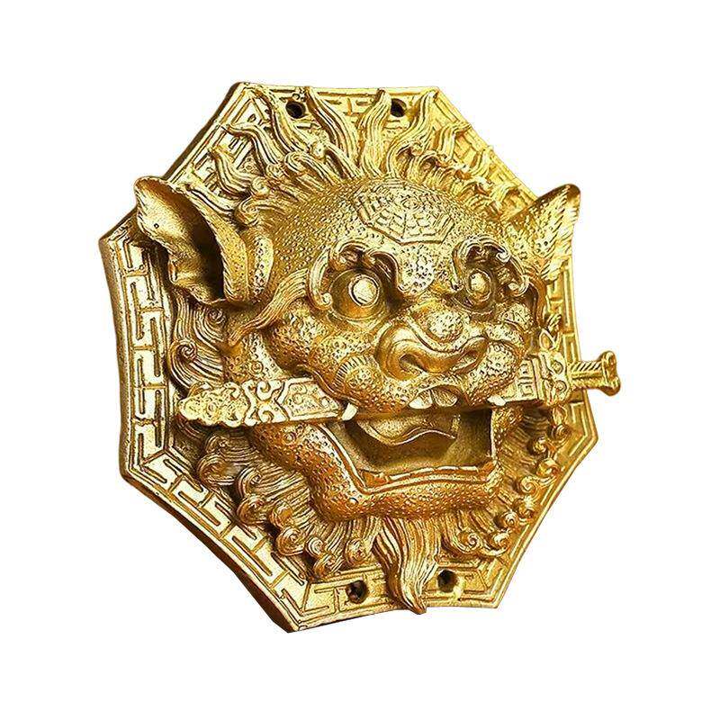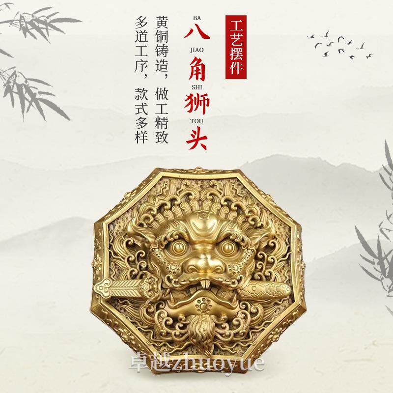 📚 铜狮咬剑挂件铜狮子虎头铜雕牌兽八角狮头摆件睚眦工艺品精美