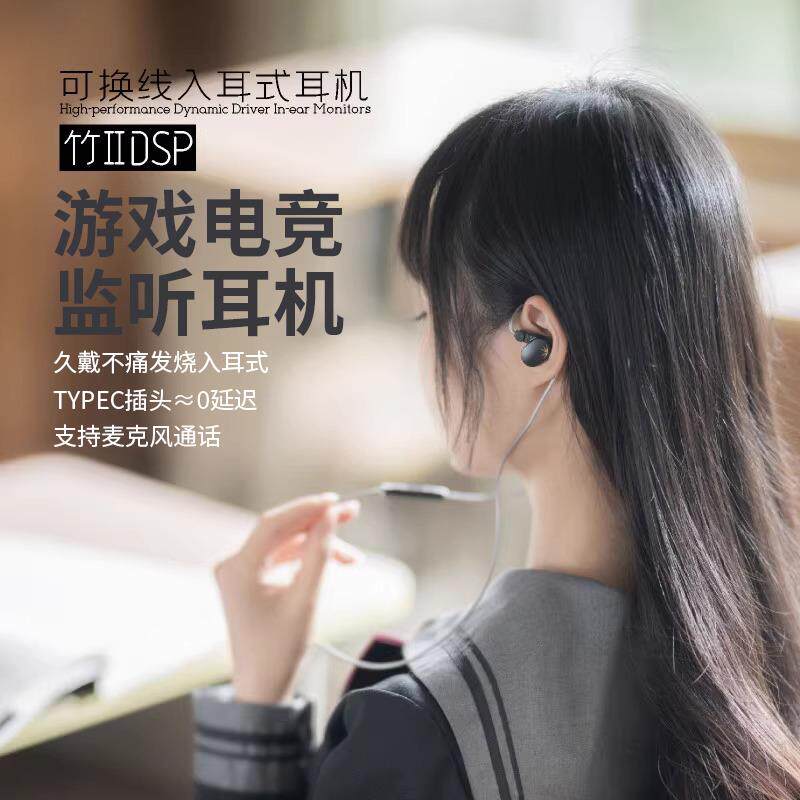 📚 水月雨竹2 可换线HiFi带麦耳机有线可调音TypeC耳机监听游戏入耳
