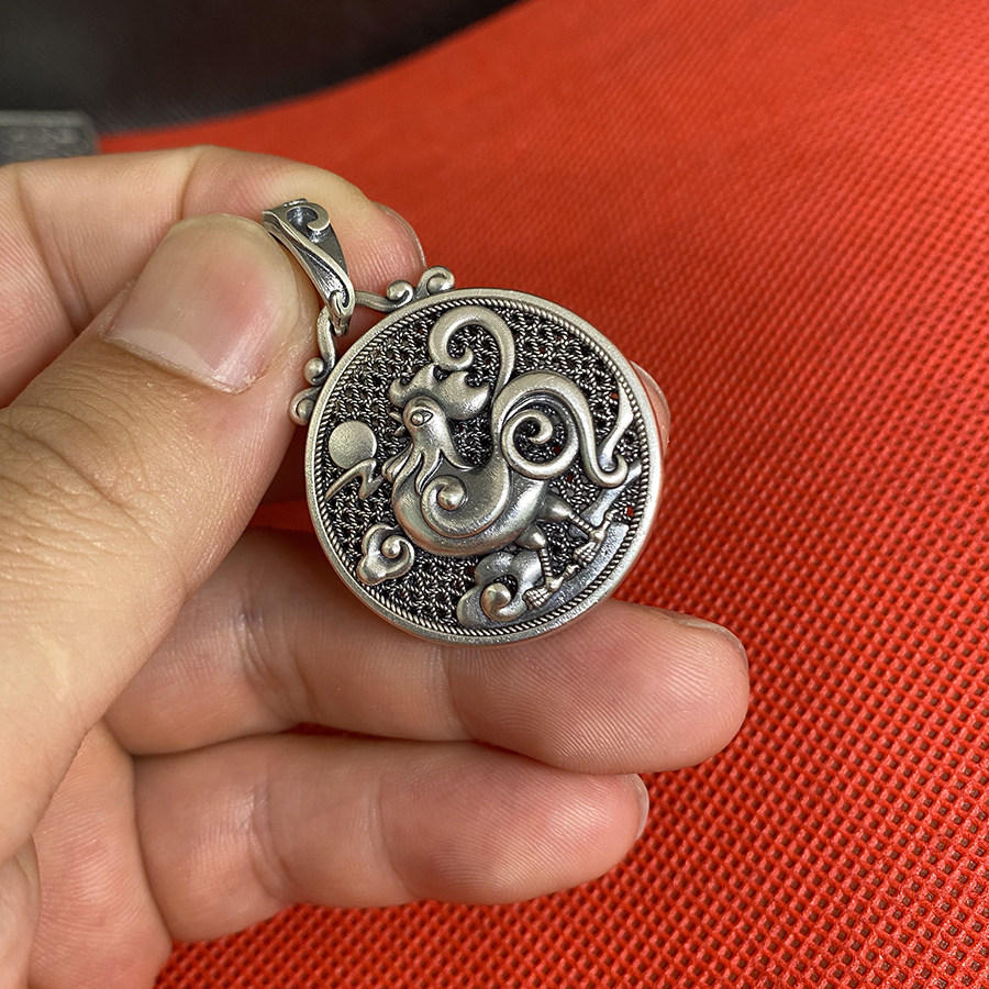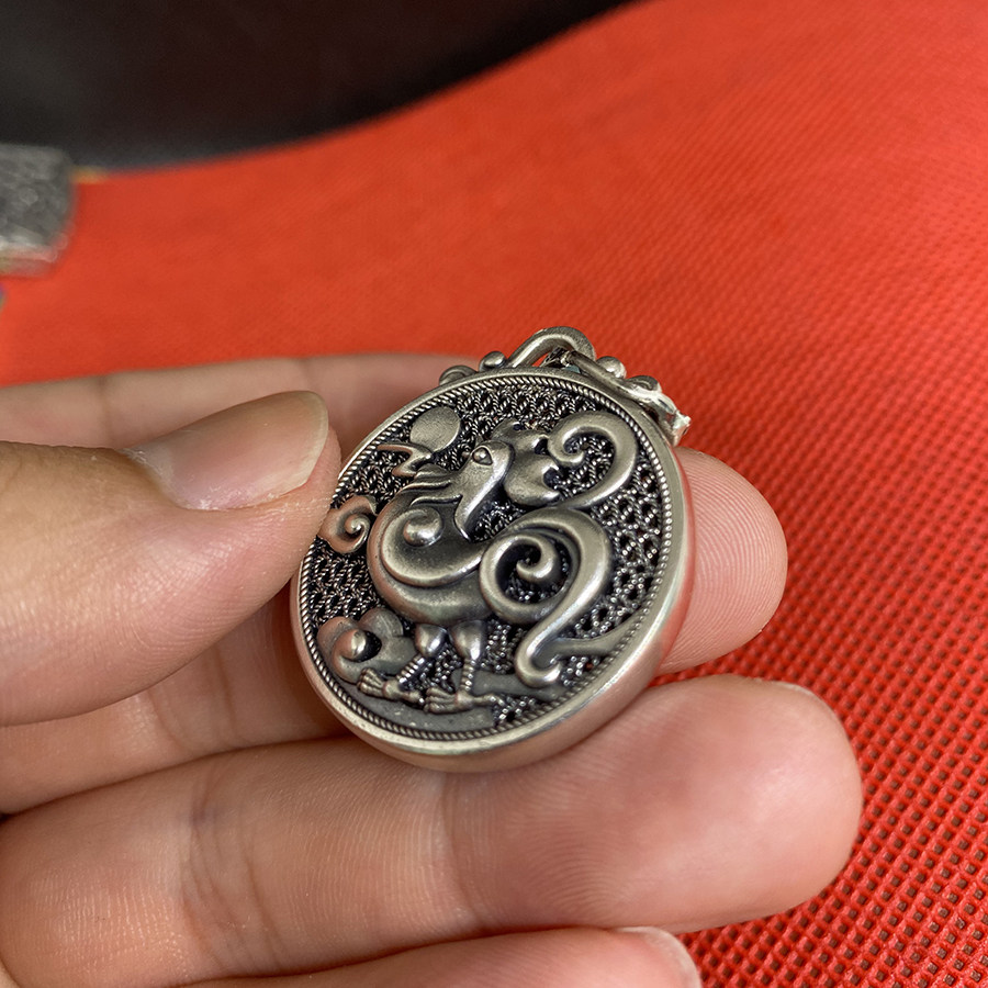 📚 999足银生肖鸡纯银吊坠男女士款复古项链国潮立体大公鸡足银项坠