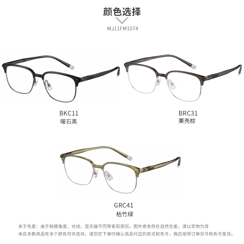 📚 木九十专柜正品MJ11FM1074半框方形近视眼镜框架男女生轻盈百搭