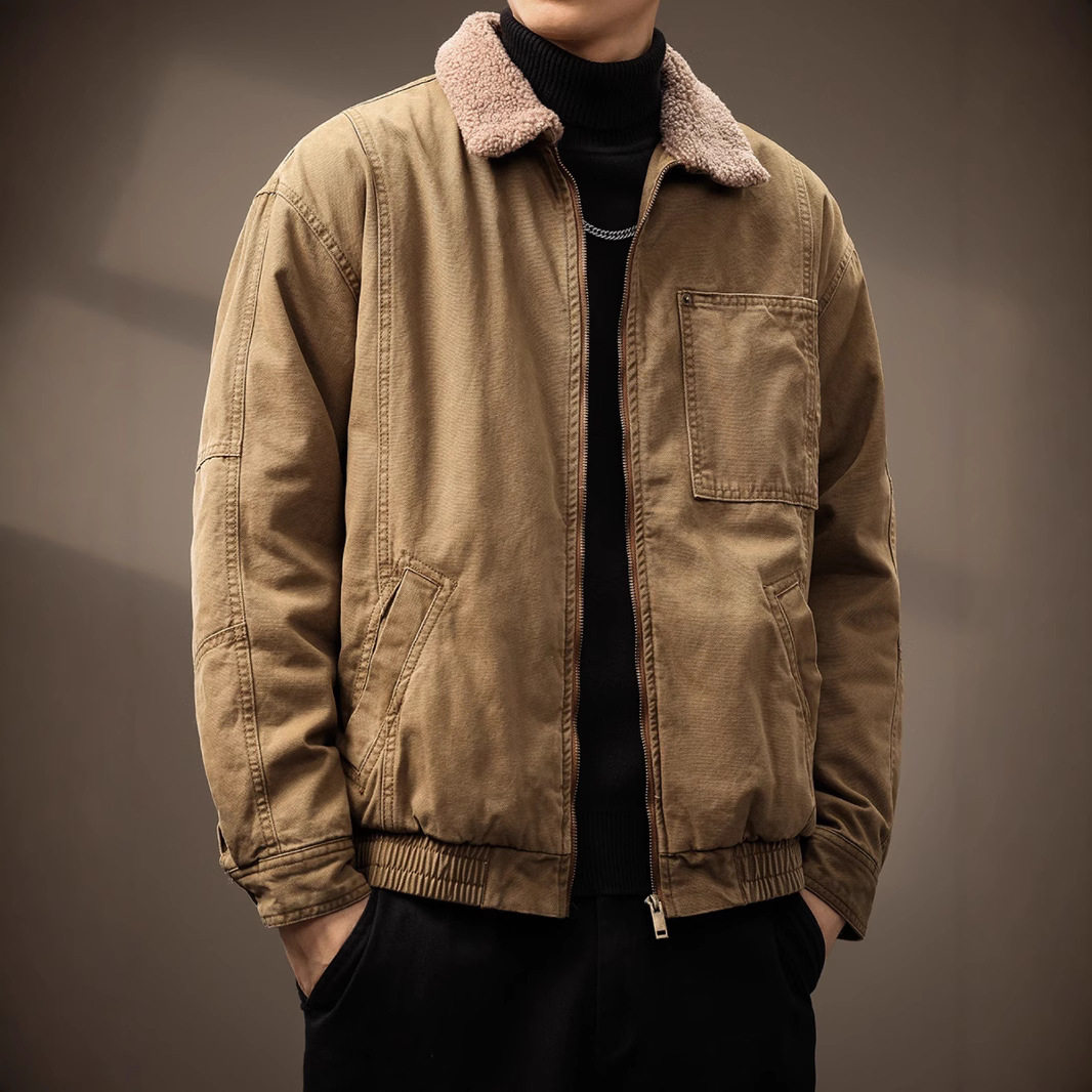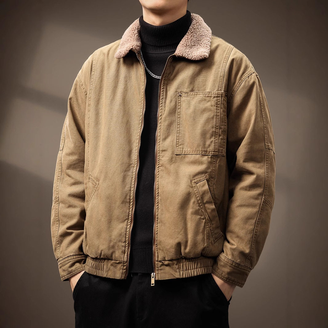 📚 高端美式复古哈林顿羊羔绒外套男冬季潮牌加厚保暖棉服工装夹克男