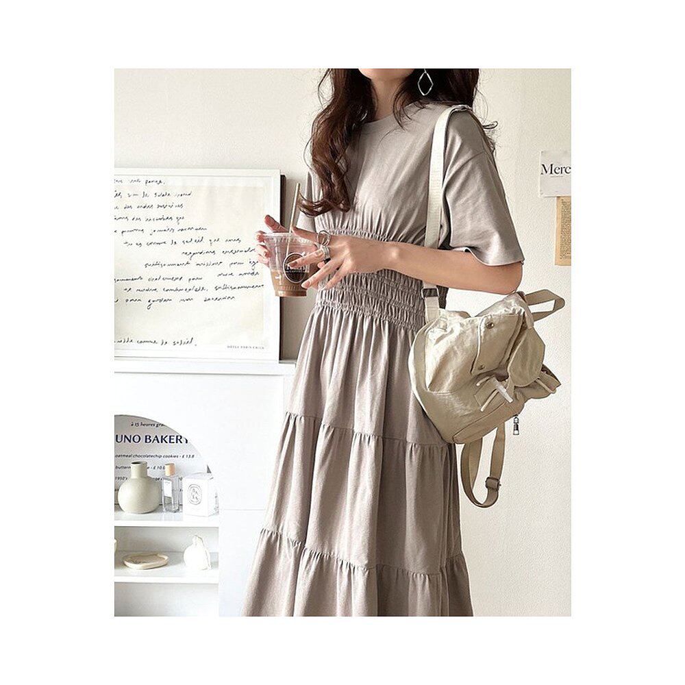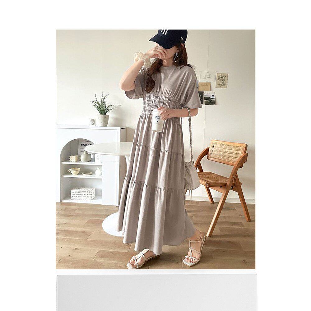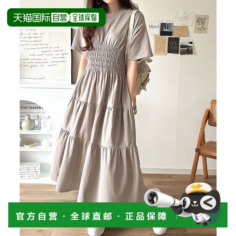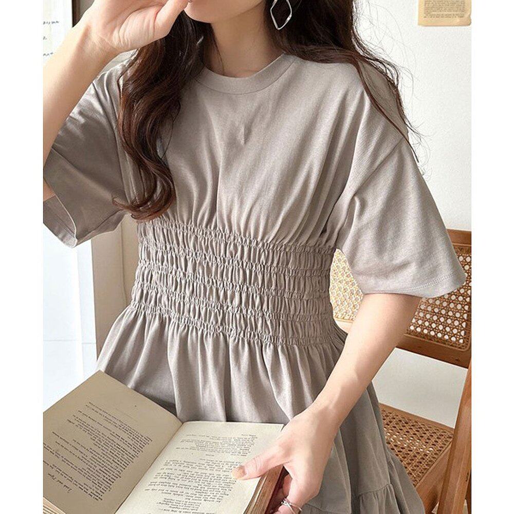 📚 日本直邮Classical Elf 纯棉腰褶破洞剪裁半袖A字连衣裙 [C04519E