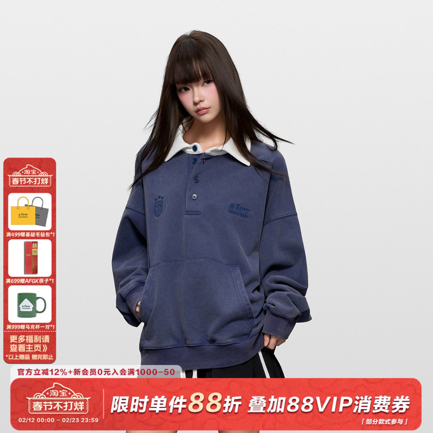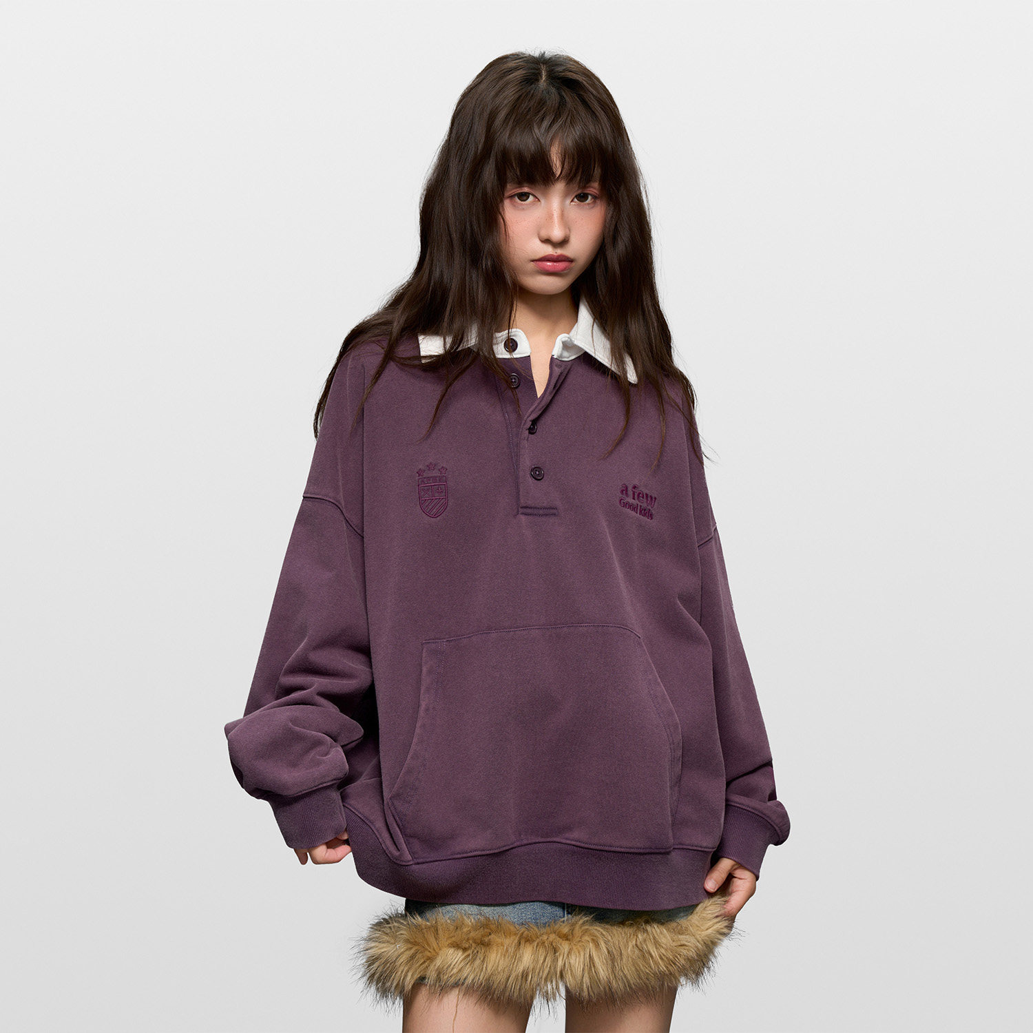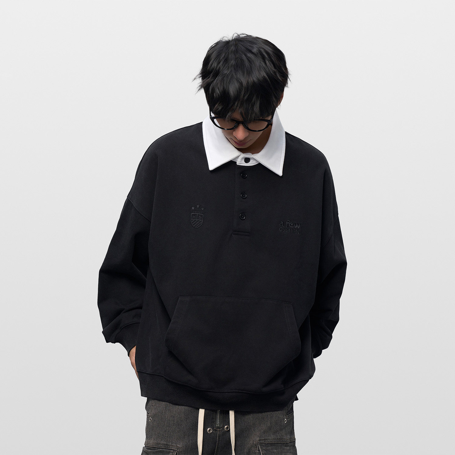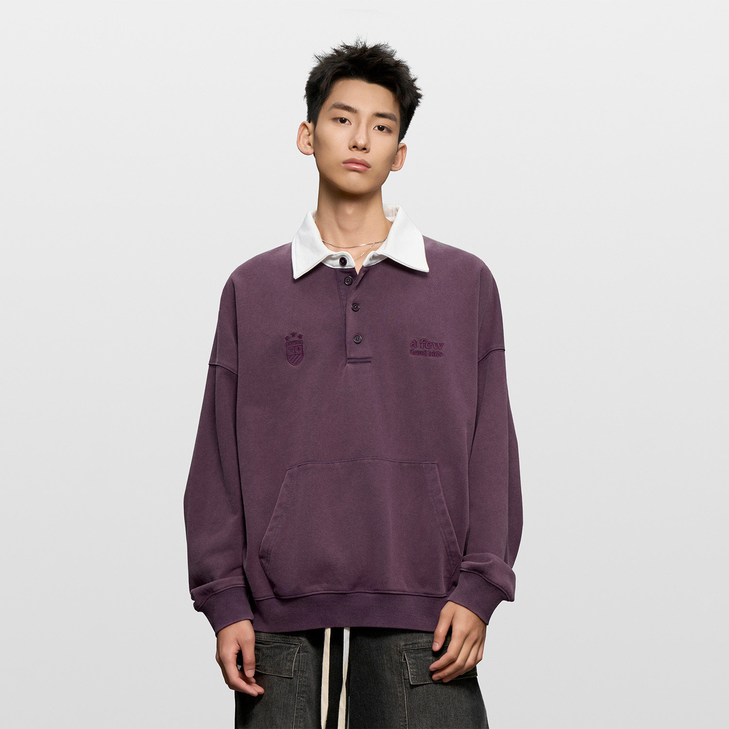 📚 AFGK25SS水洗刺绣衬衫领卫衣POLO长袖男女春秋美式复古休闲上衣