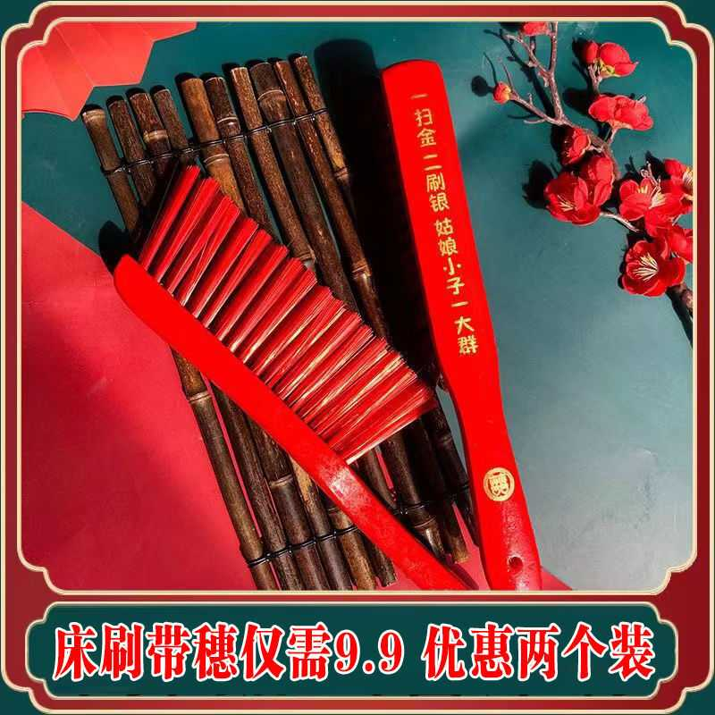 📚 结婚用木质床刷大红色扫床刷子婚礼陪嫁刷床清洁除尘毛刷结婚用品