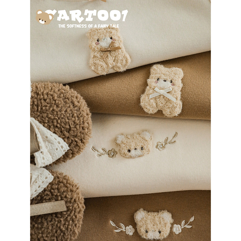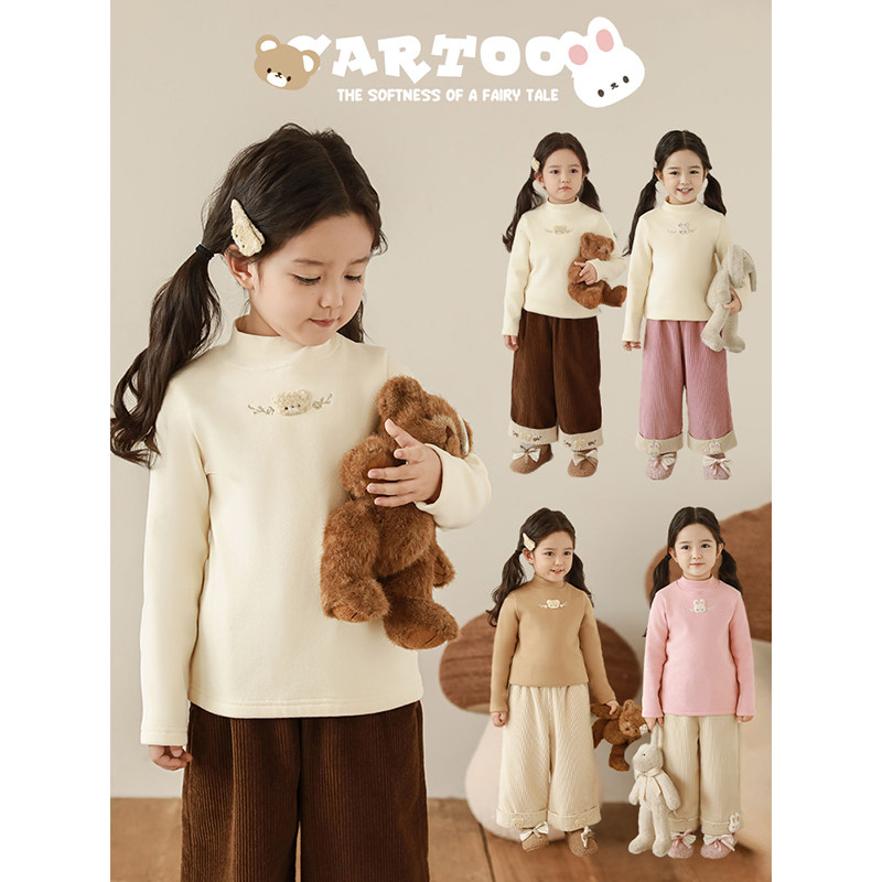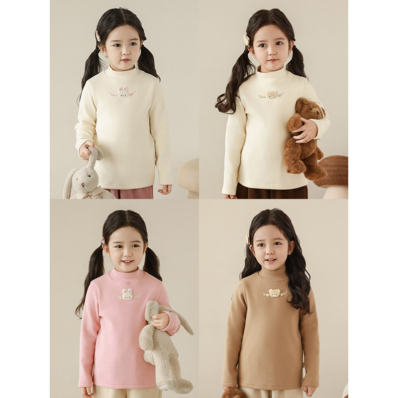 📚 幼悠 女童加绒加厚半高领修身打底衫冬季萌宠宝贝毛巾绣花保暖T恤