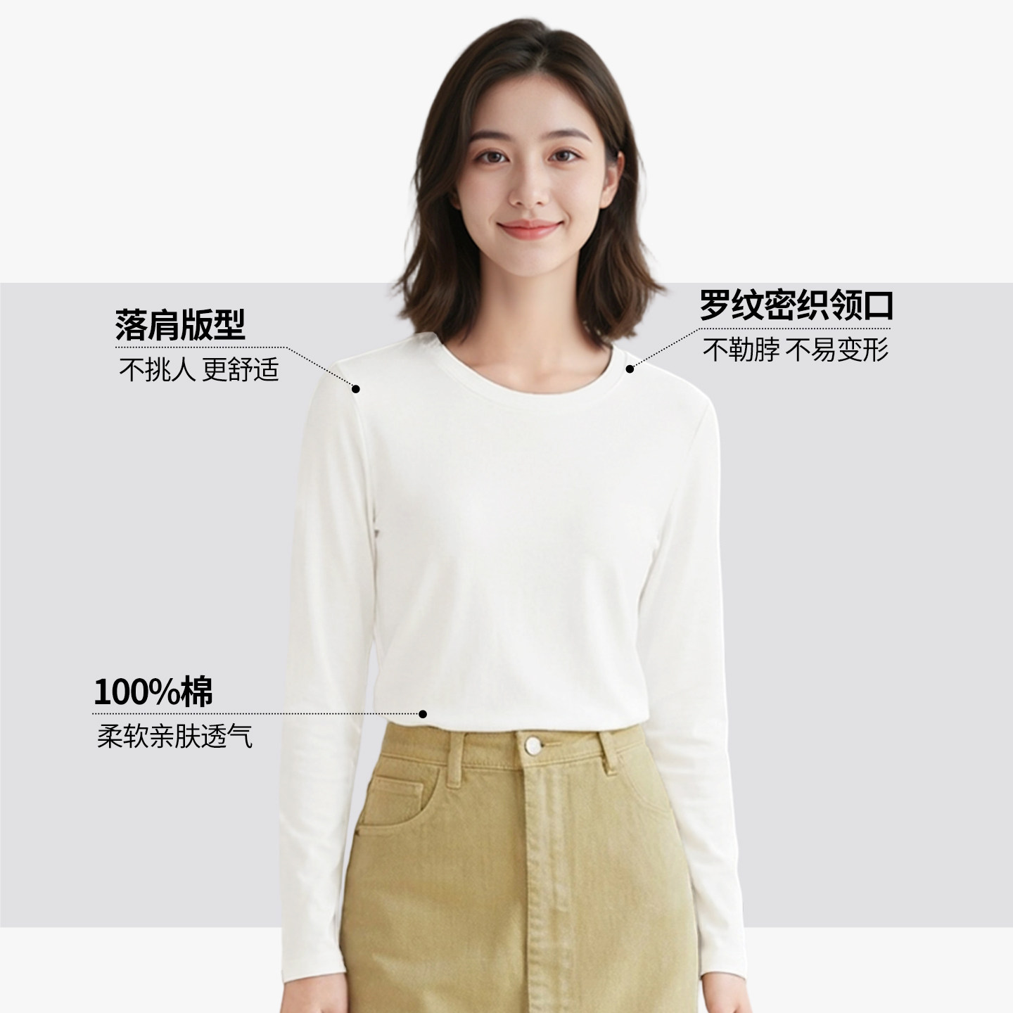 📚 都市丽人纯棉打底衫女可外穿春2026新款白色内搭上衣女士长袖t恤Y
