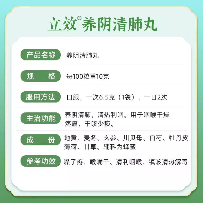 📚 立效养阴清肺丸6.5g*6袋养阴清肺清热利咽咽喉干燥疼痛干咳少痰