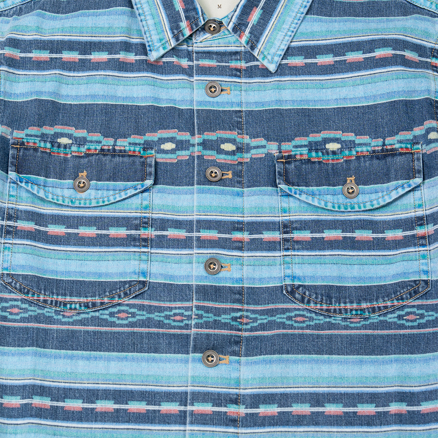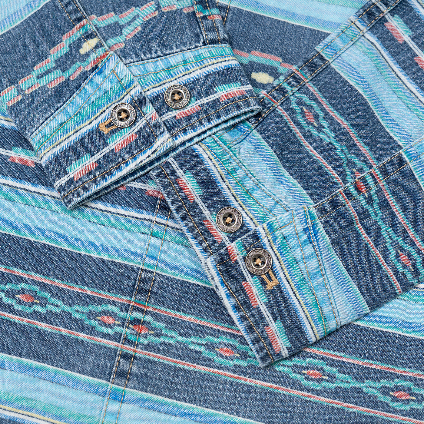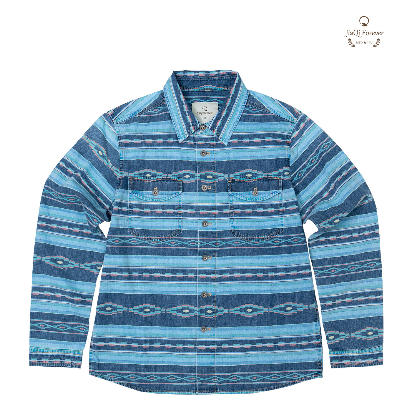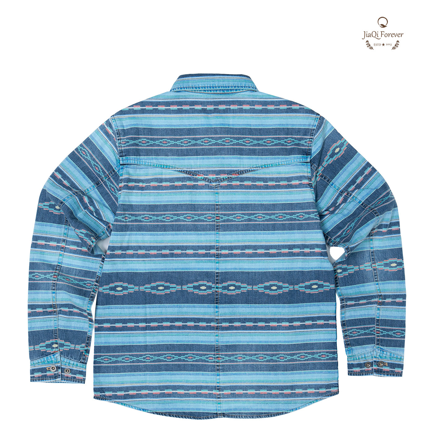 📚 美式复古纳瓦霍图腾拔印水洗做旧春秋修身男士纯棉西部牛仔衬衫