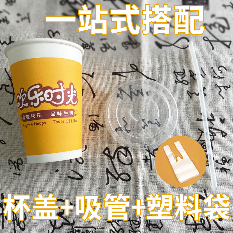 📚 纸杯豆浆杯子一次性商用批发粥杯带盖粗吸管早餐杯打包热饮杯定制