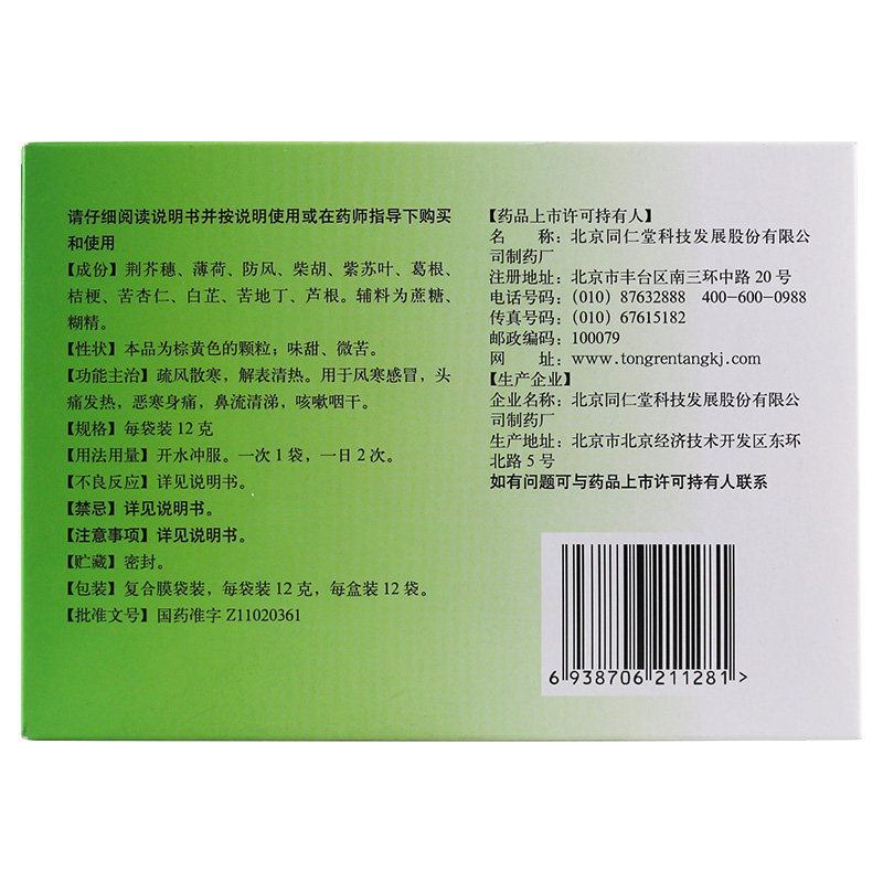 📚 同仁堂 感冒清热颗粒 12袋感冒冲剂头疼咳嗽咽干流鼻涕发热发烧