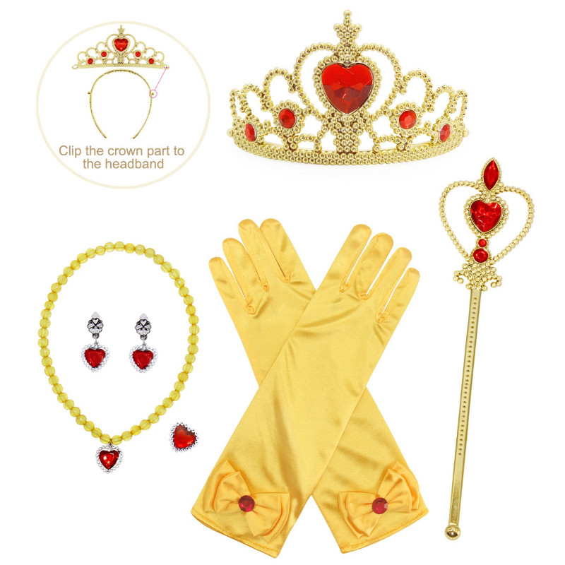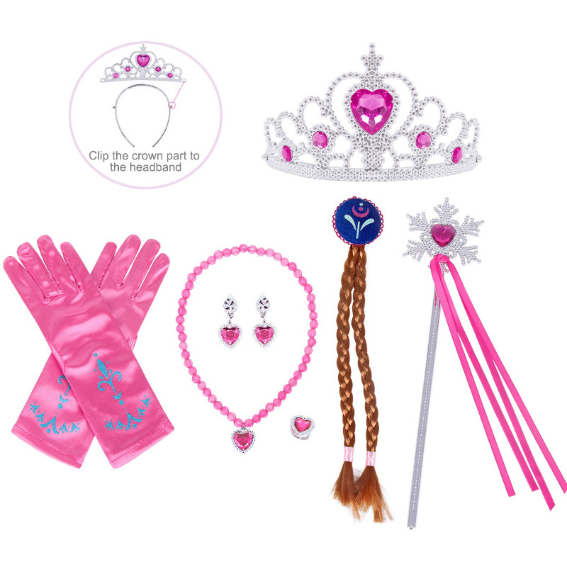 📚 安娜公主冰雪奇缘皇冠魔法棒辫子睡美人手套耳环贝儿戒指项链套装