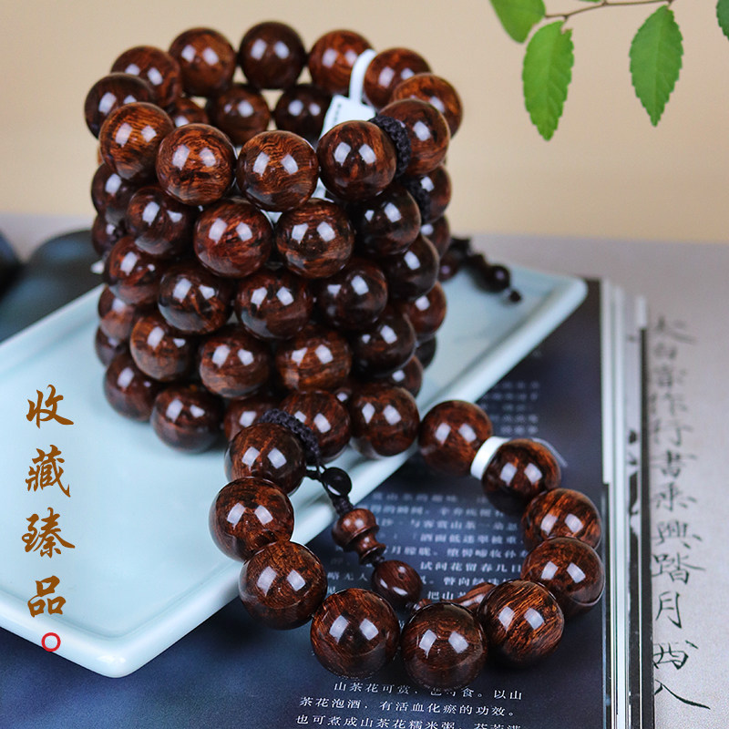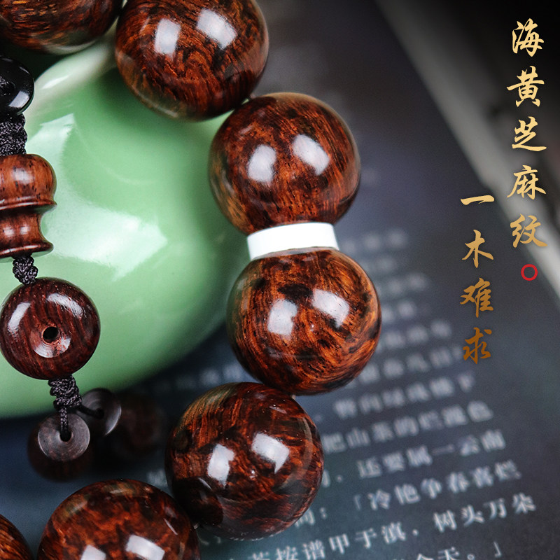 📚 海南黄花梨紫油梨老料满芝麻纹水波纹瘤疤佛珠手串男款2.0沉水级