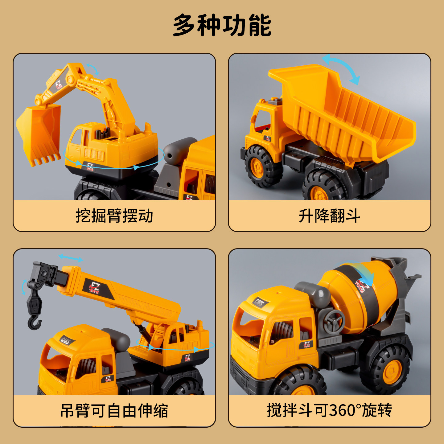 📚 翻斗车玩具大号儿童挖掘机男孩3到6岁小汽车搅拌车挖挖机吊车工程