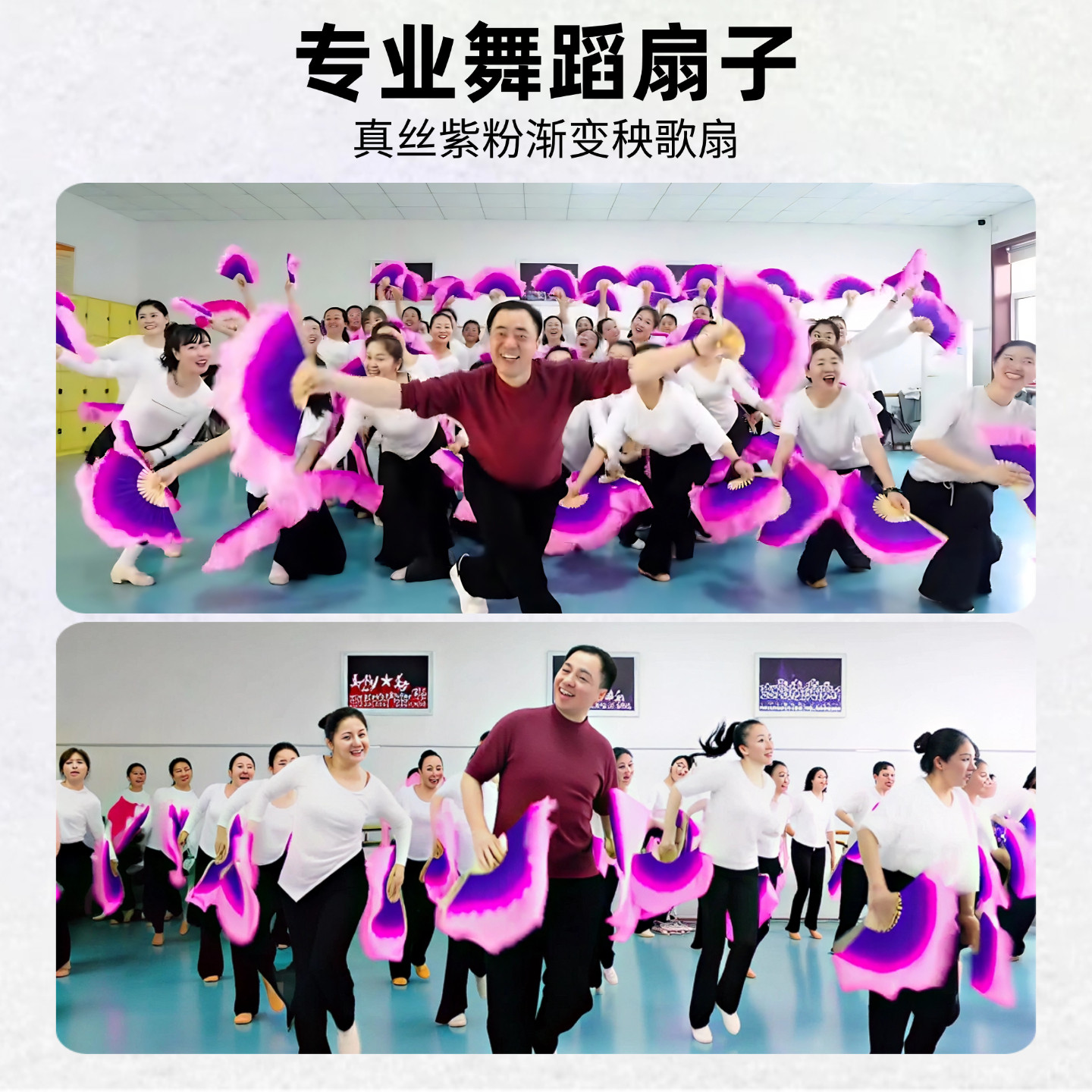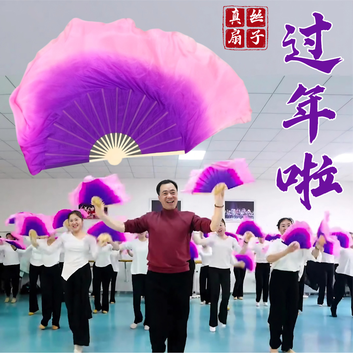 📚 过年啦扇子舞蹈扇双面真丝紫粉渐变扇黄土高坡新年扭秧歌表演专用