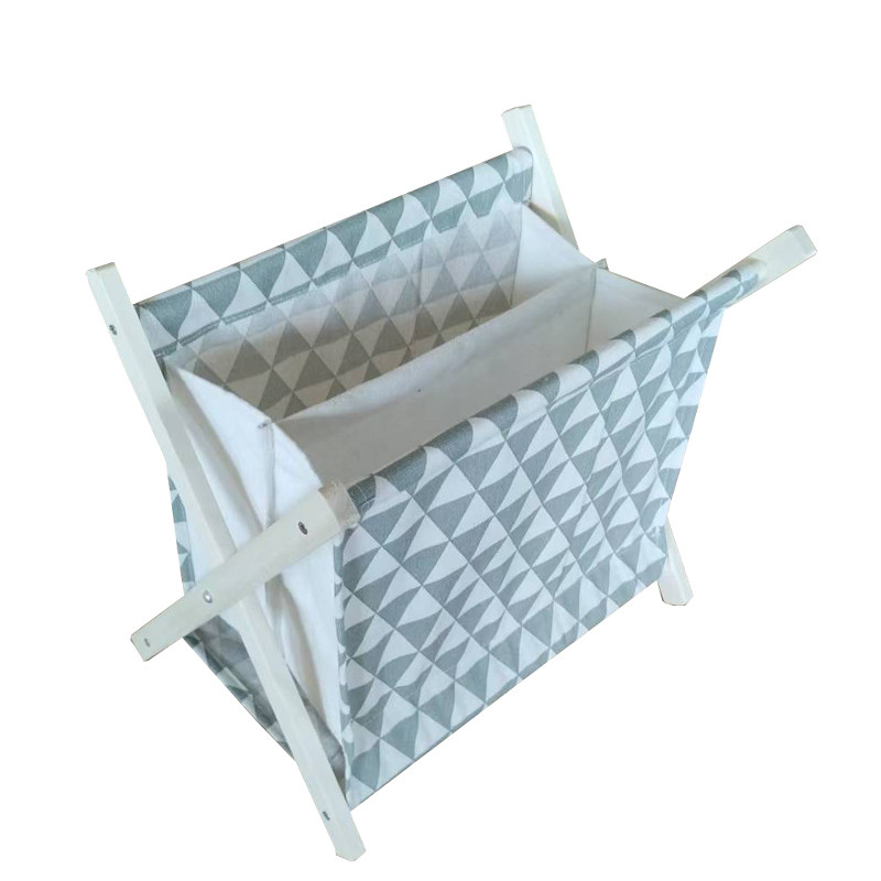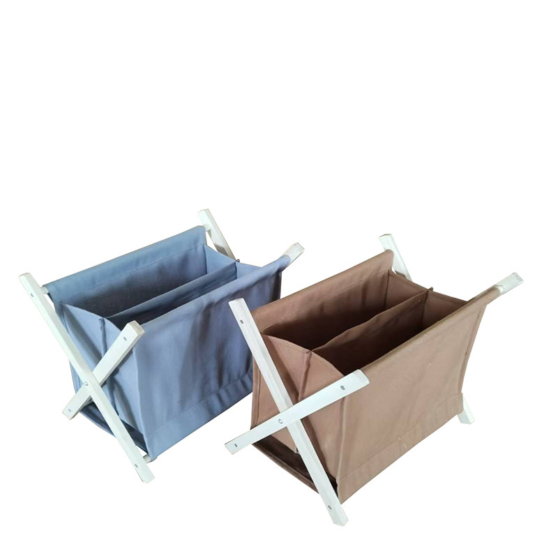 📚 桌面书本收纳筐布艺折叠书报架双隔收纳盒实木架新款创意书架