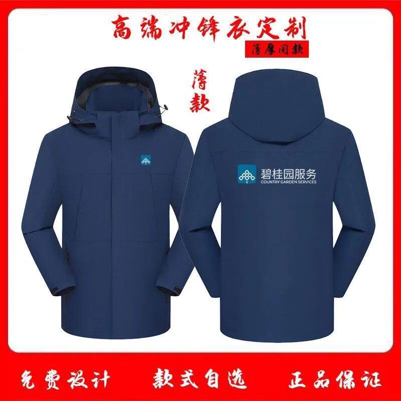 📚 秋冬碧桂园物业工作服外套冲锋衣印字定制加厚房地产工装logo
