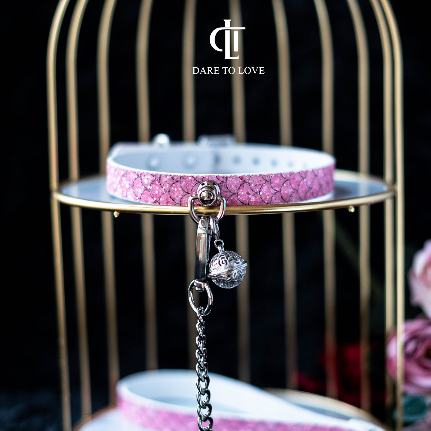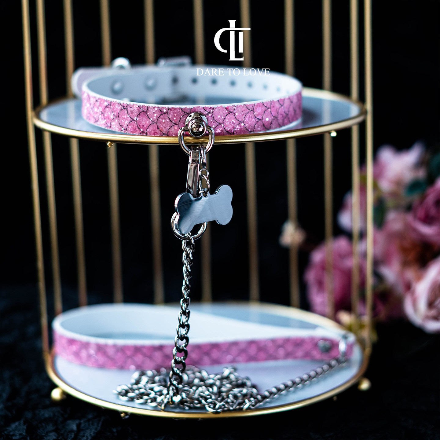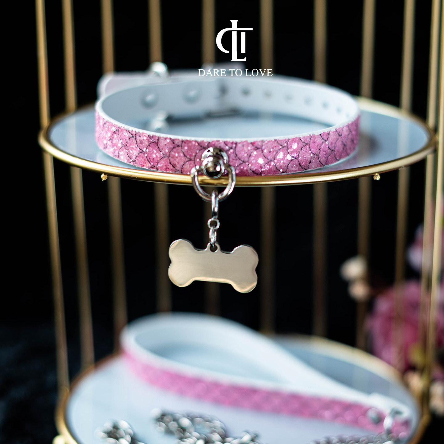 📚 【DTL】粉色闪片choker亮片项圈男女字母m可刻字定制K9装饰puppy