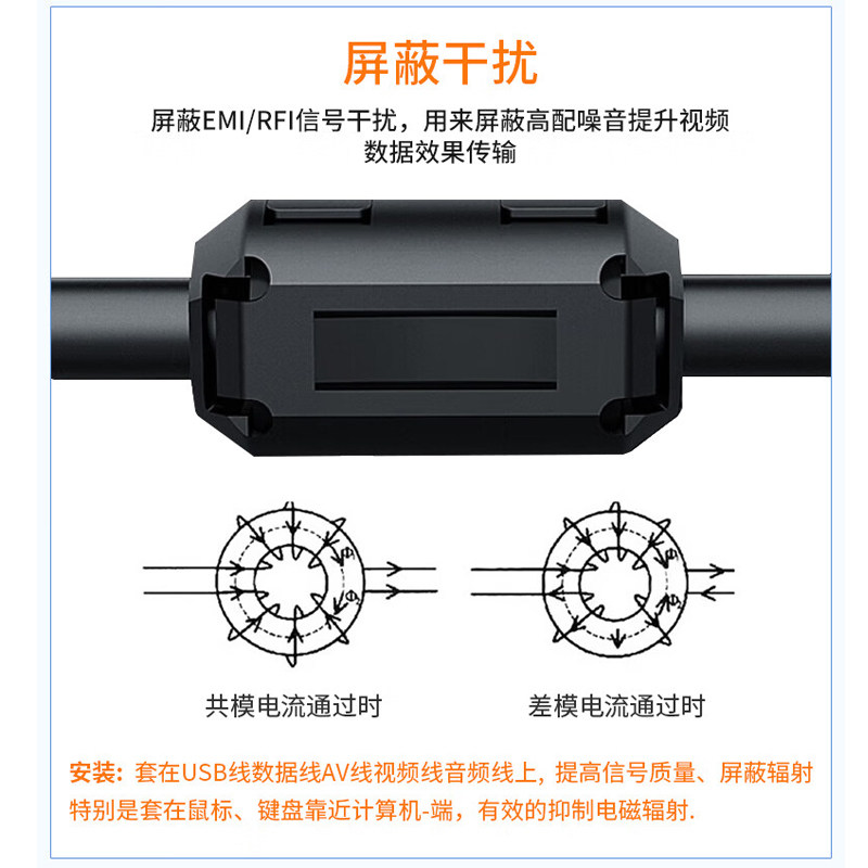 📚 高频抗干扰滤波磁环铁氧体镍锌磁芯卡扣式可拆卸屏蔽磁环