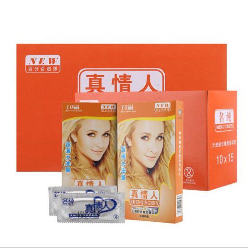 📚 真情人避孕套150只装超薄润滑大盒量油多光面长方形安全套子包邮