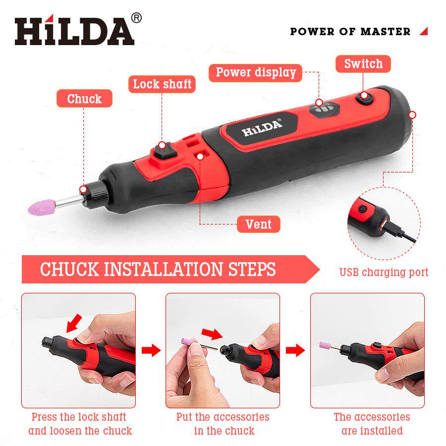 📚 希尔达打磨机锂电充电款电动跨境小型手持打磨机雕刻48件工具套装