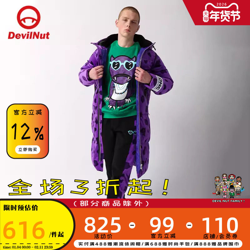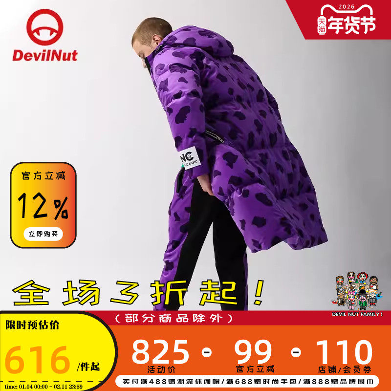 📚 DEVIL NUT潮牌 恶魔 秋冬新款无性别拼接保暖长款羽绒服 豹子 ATY