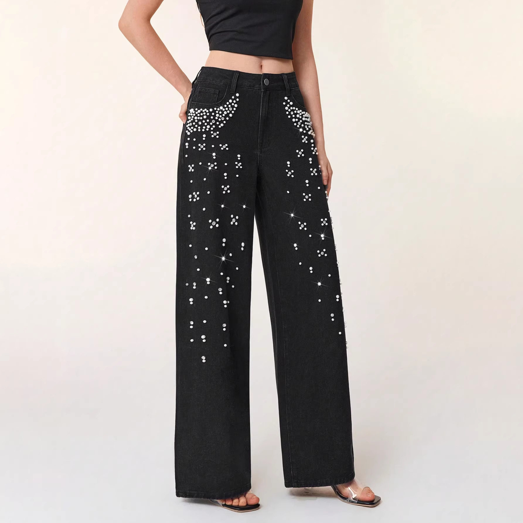 📚 Loose straight-leg denim pants钉珠牛仔裤休闲宽松显瘦直筒长裤