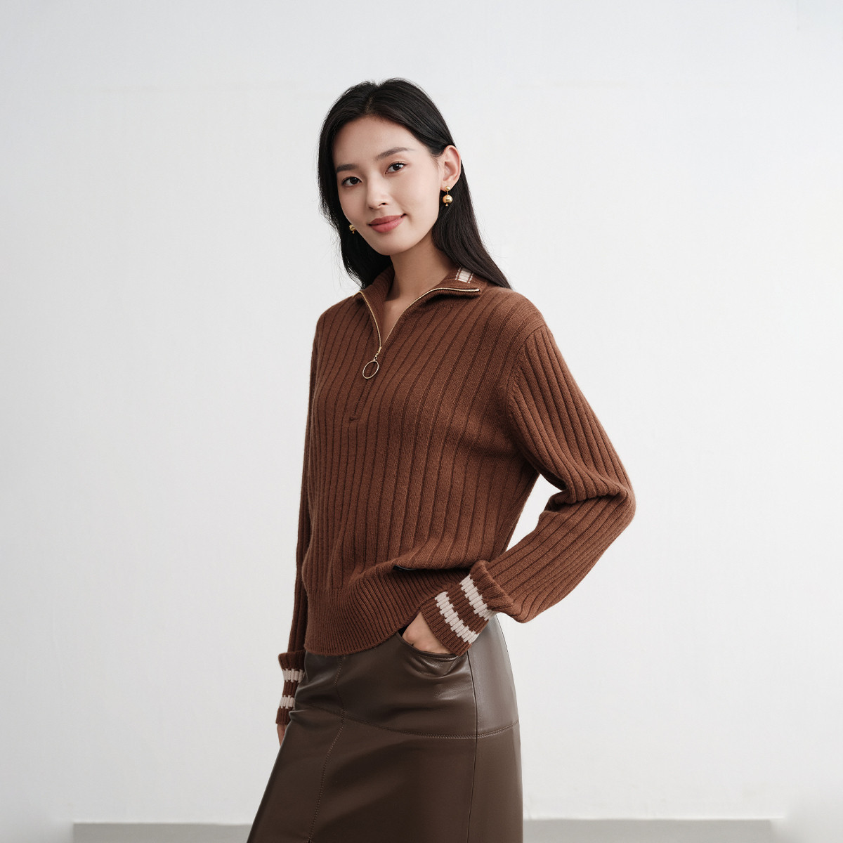 📚 EP雅莹2025早秋新款 阿拉善羊绒衫 软糯半拉链套头针织毛衣9545A