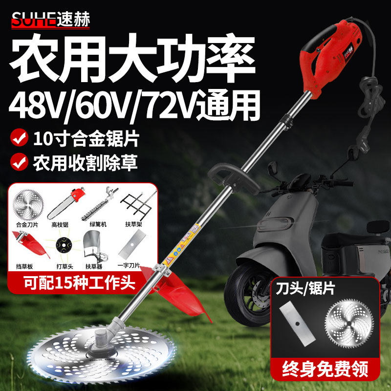 📚 插电瓶车割草机背负式48v60v72除草机新款电动打草机头农用大功率
