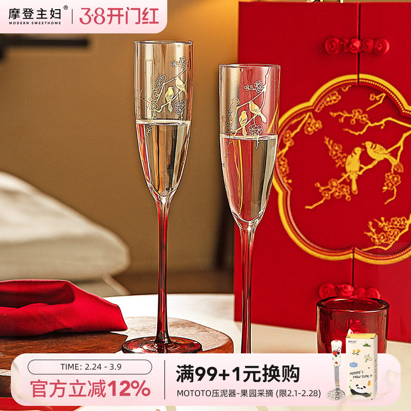 📚 摩登主妇喜上眉梢红酒杯高脚杯香槟杯订婚新婚礼物一对结婚敬酒杯