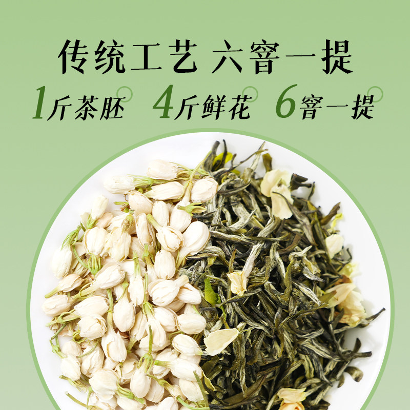 📚 茉莉花茶六窨茉莉贡芽特级浓香型绿茶自己喝送礼耐泡伴手茶罐装