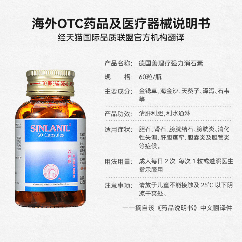 📚 德国善理疗强力消石素60粒胶囊清肝利胆消除肾胆结石排石进口正品