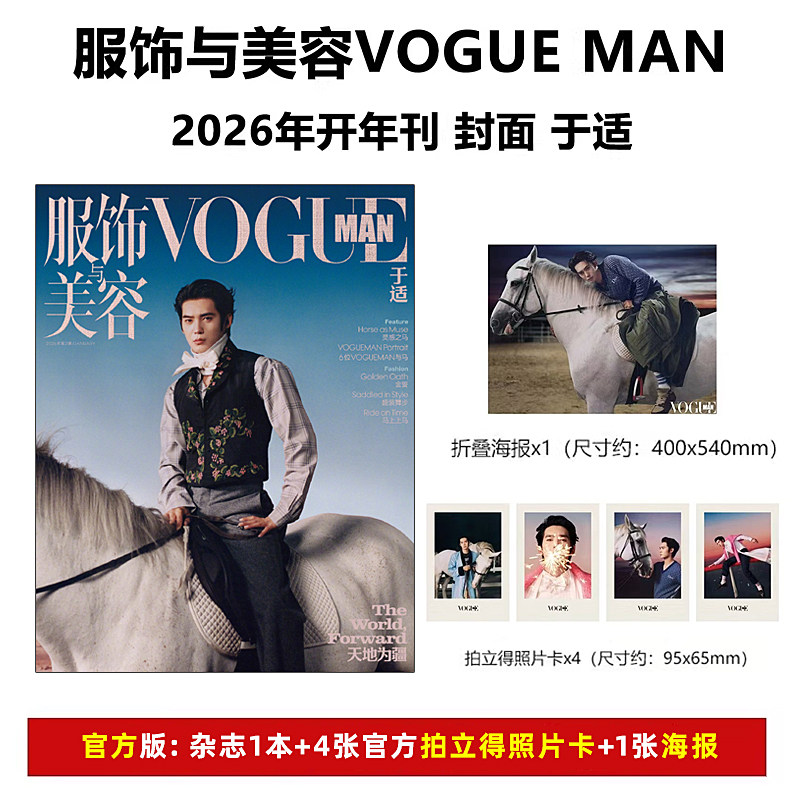 📚 计入销量 服饰与美容VOGUE MAN 2月 周深 A版封面+B版封面 含官方拍立得照片卡abcd款+切页 2026年2月杂志周深封面/1月于适/单依纯