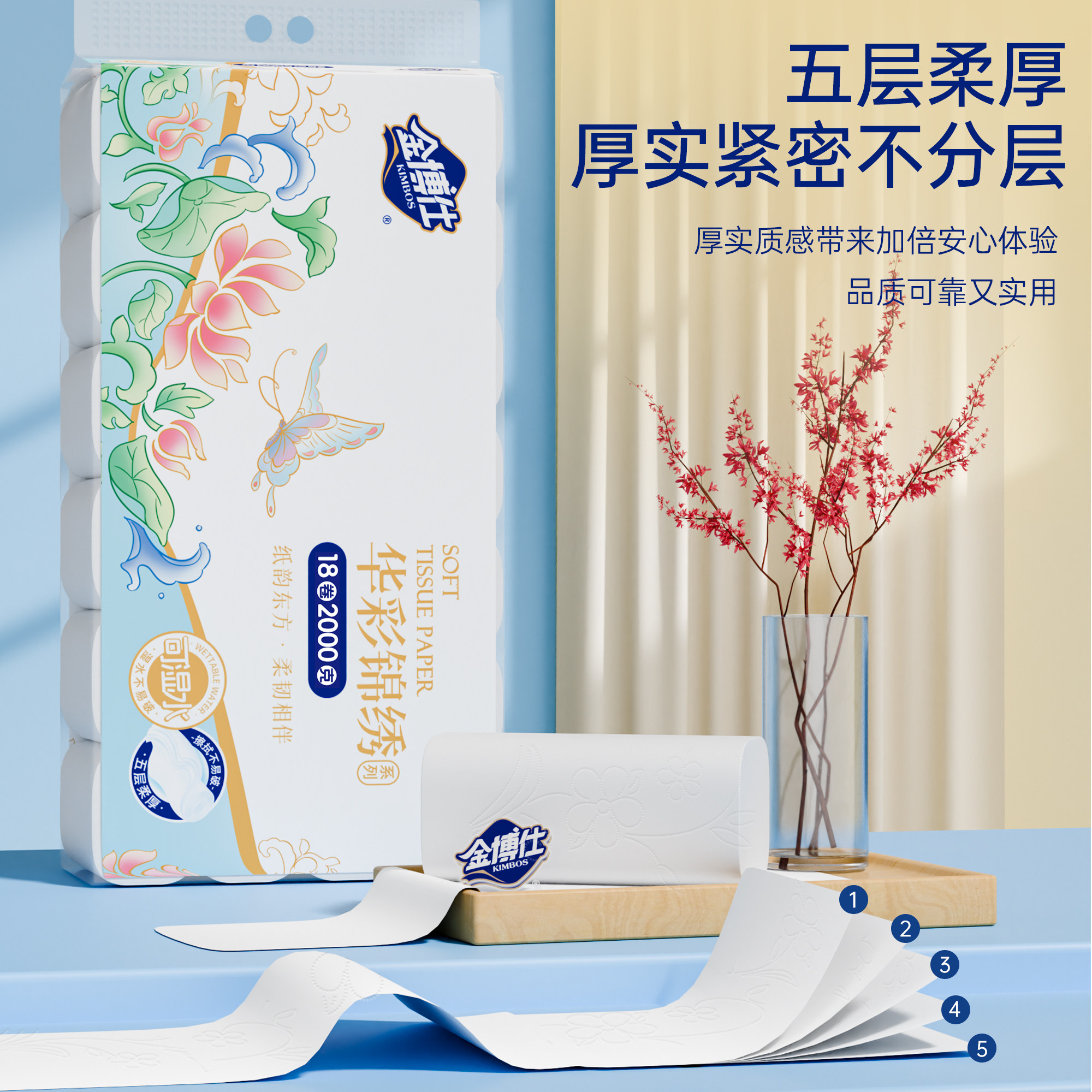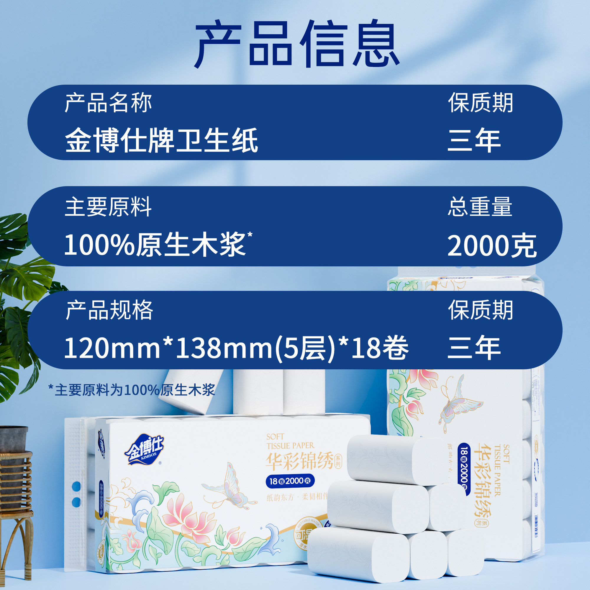 📚 金博仕18卷可湿水卫生纸卷纸家用实惠装大卷筒纸卫生间厕所厕纸巾