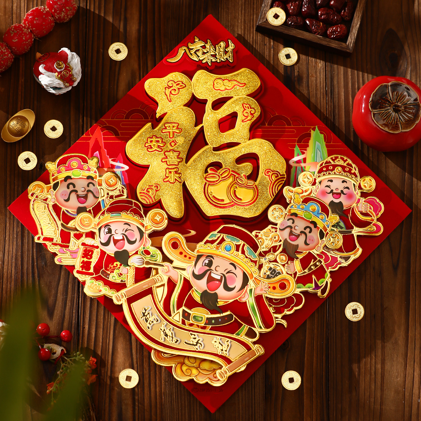 📚 2026马年新款福字贴春节新年入户门大门高端立体植绒福字门贴装饰