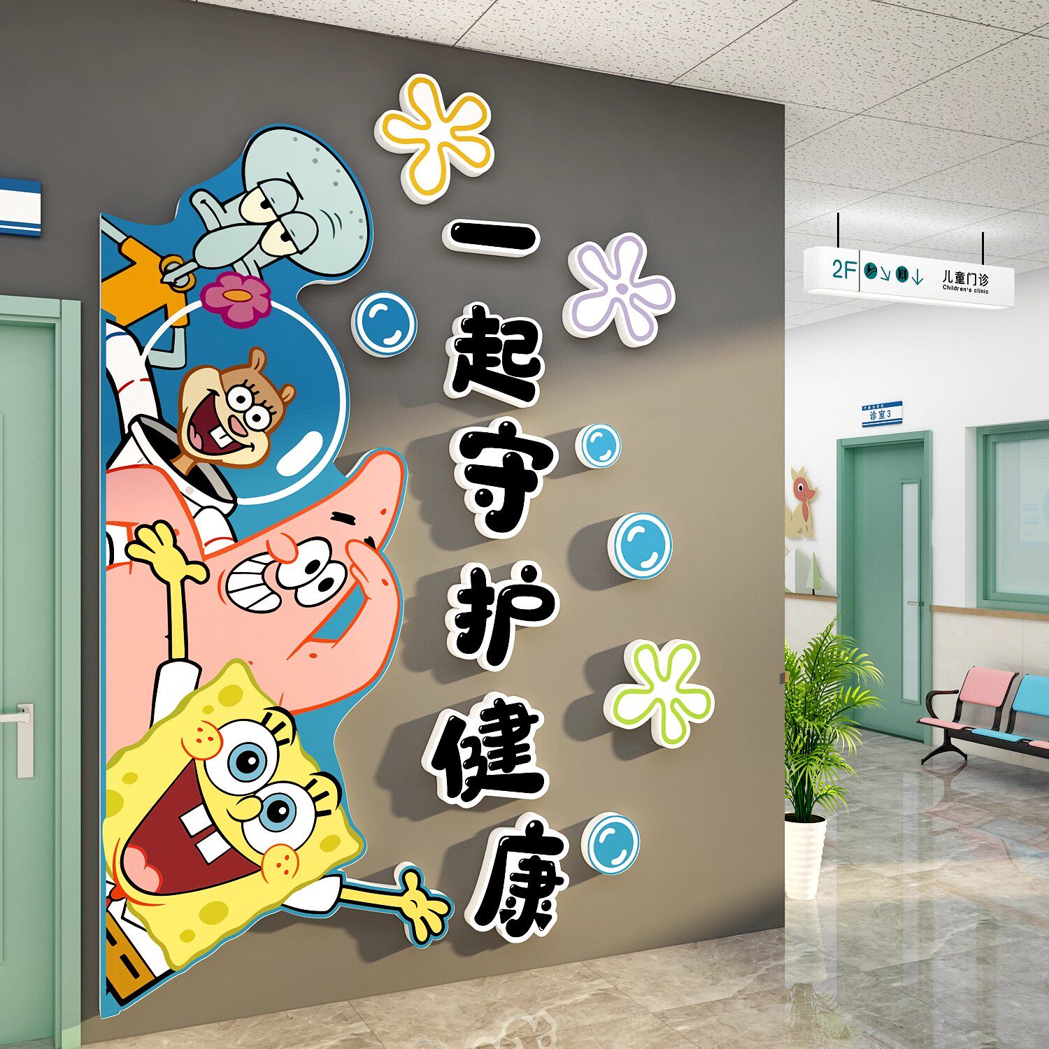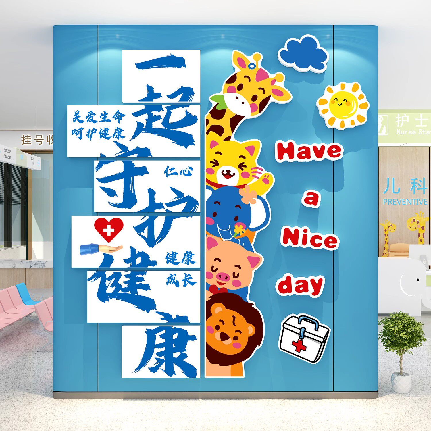 📚 儿童医院文化墙面贴画预防接种口腔门诊所科室病房布置护士站装饰