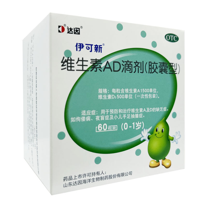 📚 达因伊可新维生素ad滴剂60粒伊可新维d3婴幼儿一岁以下维d补钙