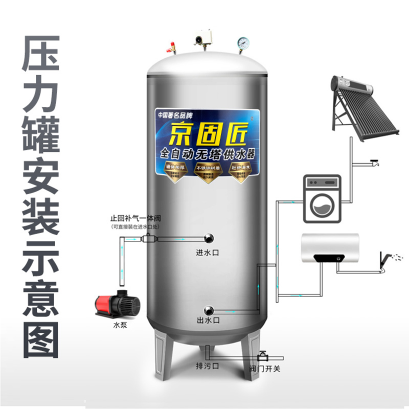 📚 不锈钢压力罐家用无塔供水器全自动水箱水泵水塔自来水增压储水罐