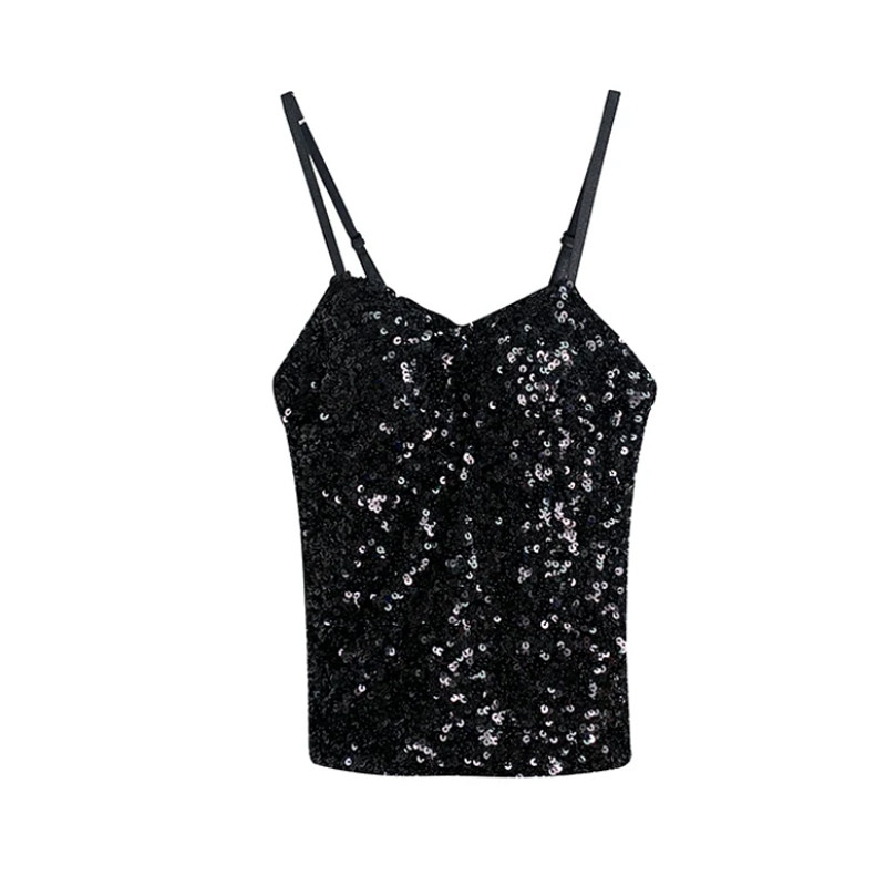 👗这件上衣的设计真的让我惊艳到了!简洁却不失时尚感,亮丽的亮片装饰更是增添了一抹亮点。吊带设计恰到好处地凸显出你的美背线条,让你在人群中脱颖而出。