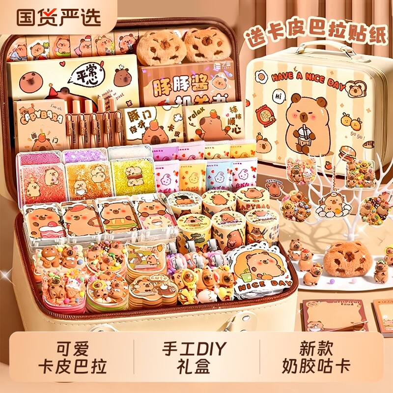 📚 卡皮巴拉贴纸奶油胶咕卡套装手帐礼盒儿童手工制作手账豪华流沙