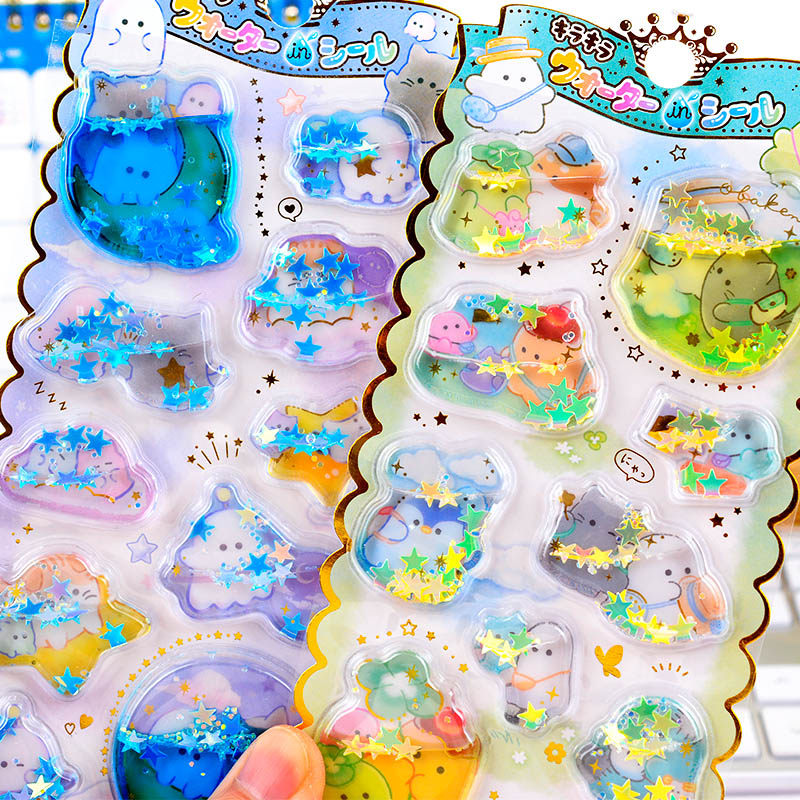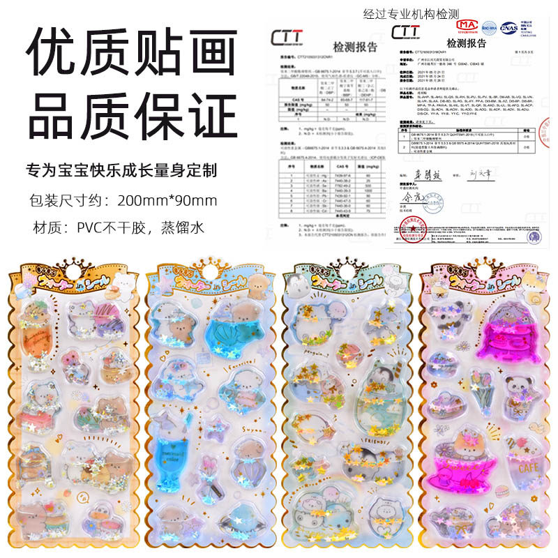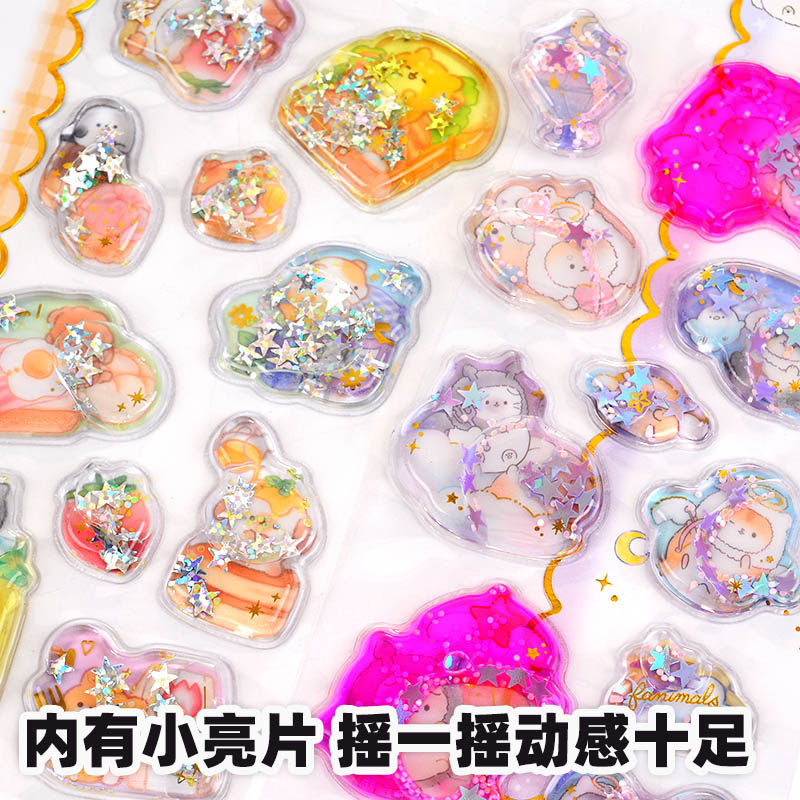 📚 儿童独角兽小动物3d立体带水摇摇贴纸女孩宝宝水晶闪动流沙粘贴画