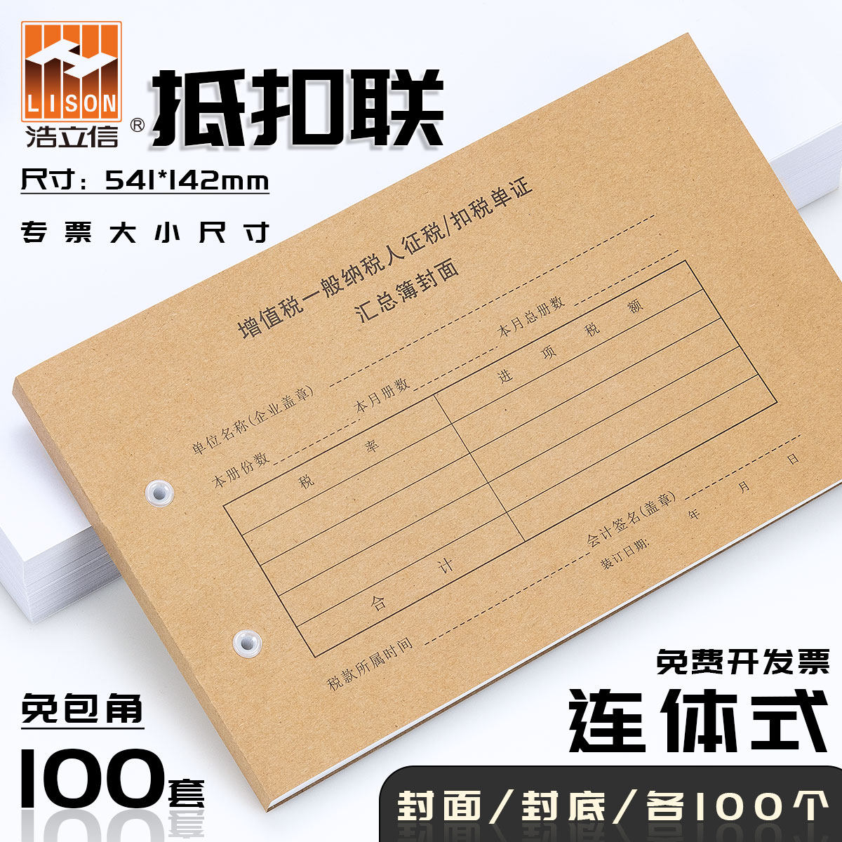 📚 【连体式抵扣联100套】浩立信通用增值税抵扣联记账凭证封面一般纳税人征税/扣税单证汇总薄勤为径多省包邮