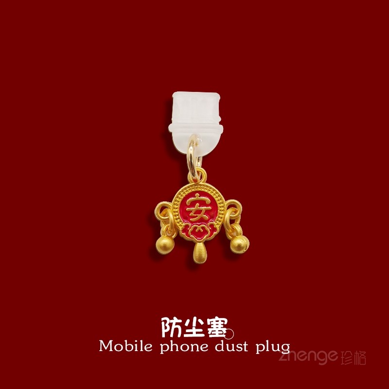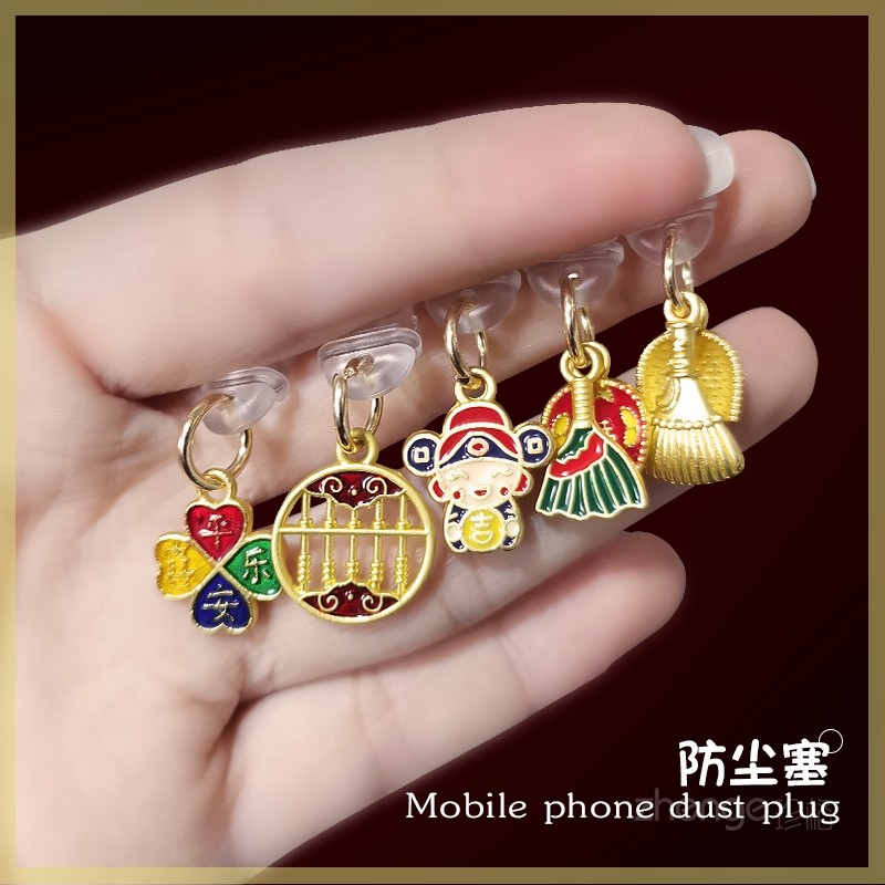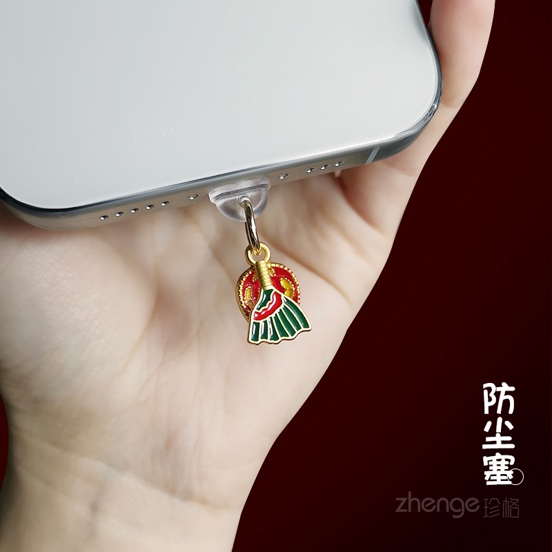 📚 双域国风挂件手机防尘塞ins招财包挂绳壳不顶壳不影响手机充电口孔充电防尘塞吊坠用苹果type-c安卓防尘挂饰