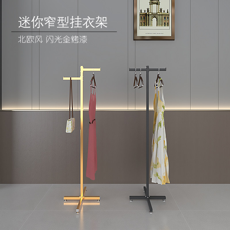 📚 落地挂衣架卧室迷你小衣帽架办公室窄型简易晾衣单杆服装店展示架